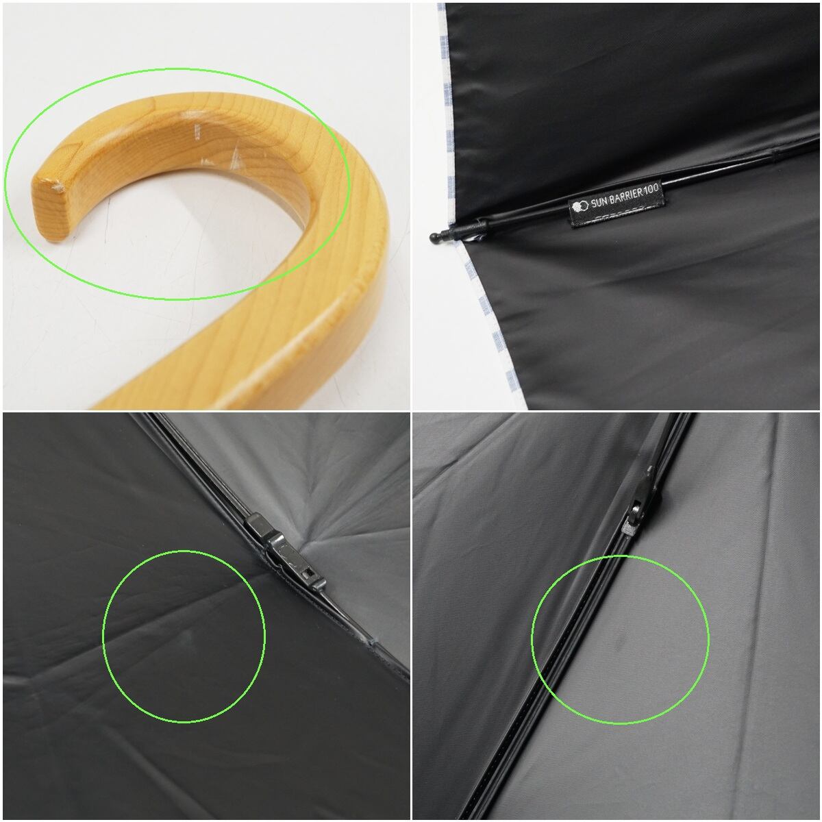 完全遮光 折りたたみ日傘 サンバリア100 USED美品 2段折 ブルー ストライプ 木製手元 UV 遮熱 折日傘 50cm FS9490