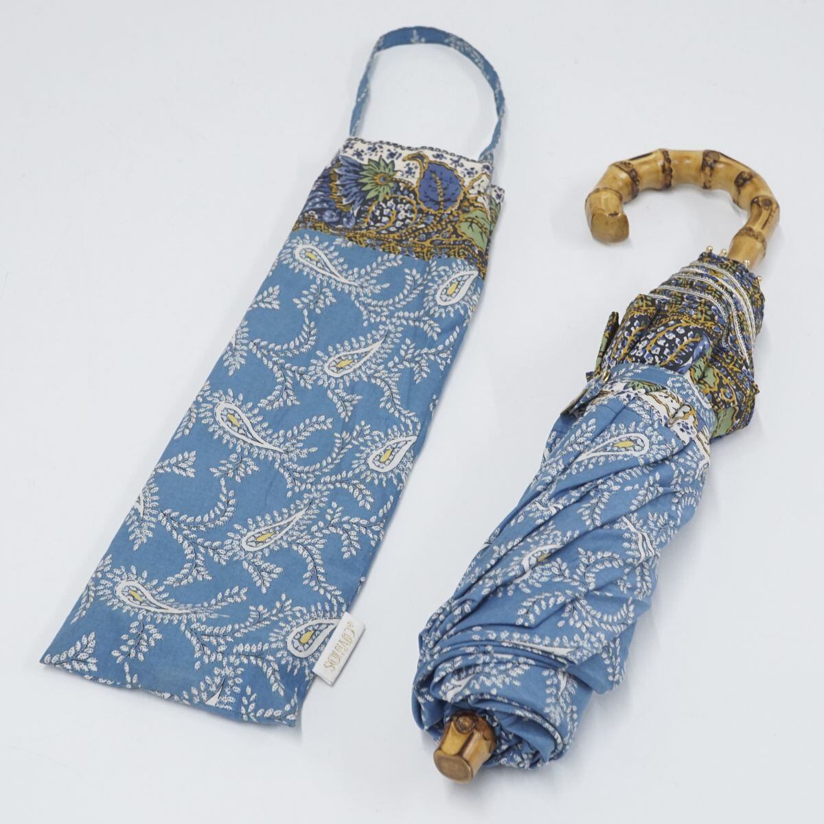 SOULEIADO 折りたたみ日傘 USED美品 ソレイアード ペイズリー オリジナルプリント クラシカル アンティーク 収納袋付 50cm FS8605
