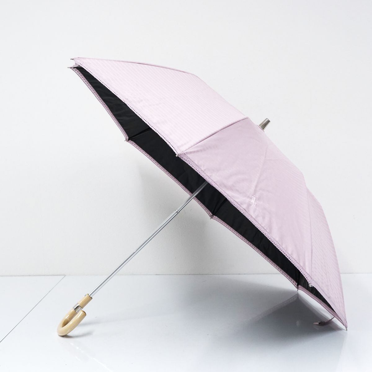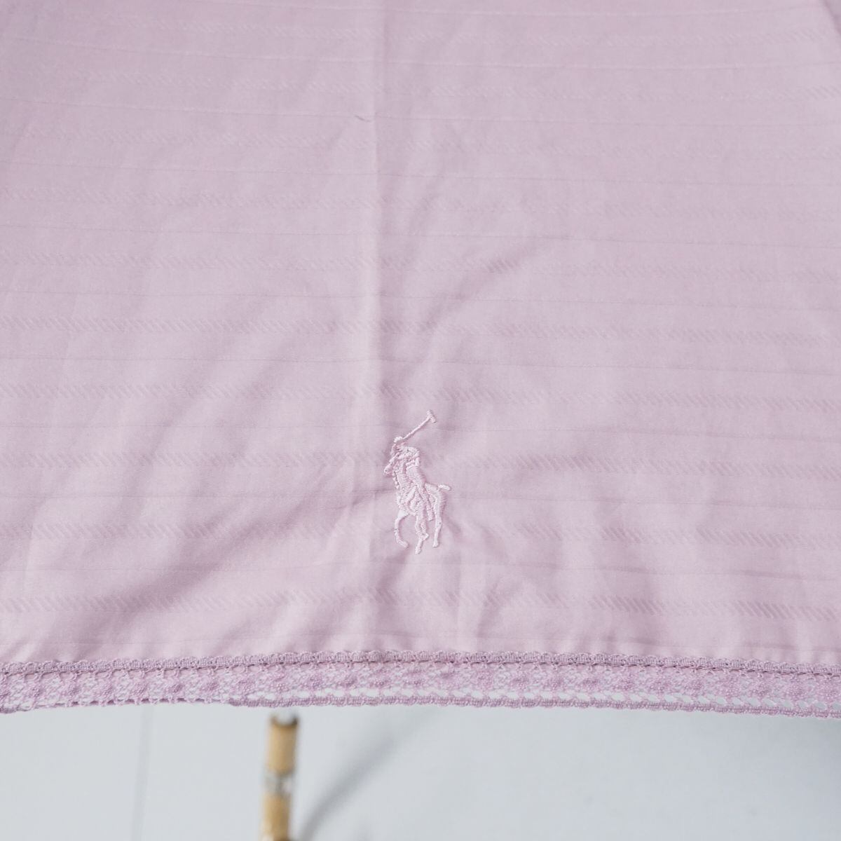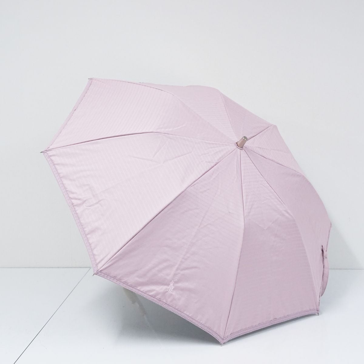 折りたたみ日傘 POLO RALPH LAUREN ラルフローレン USED美品 一級遮光 晴雨兼用 ジャガードボーダーxレース ポロポニー 50cm FA8610