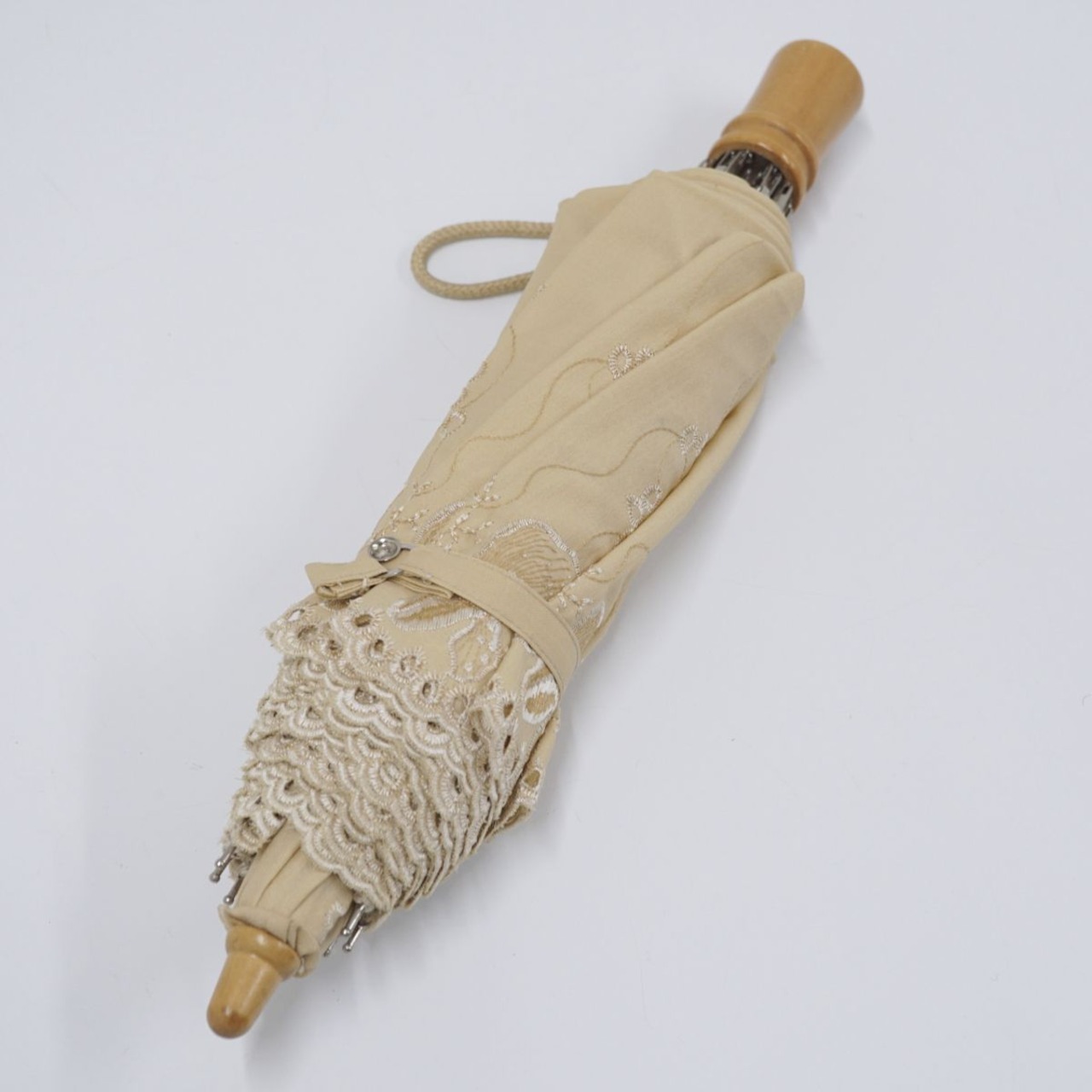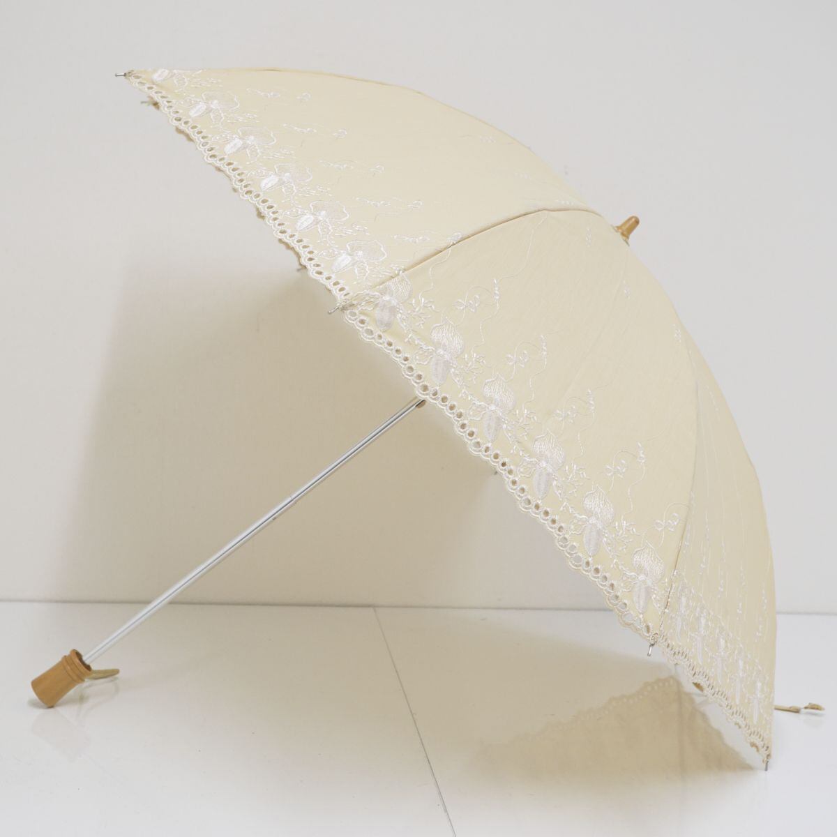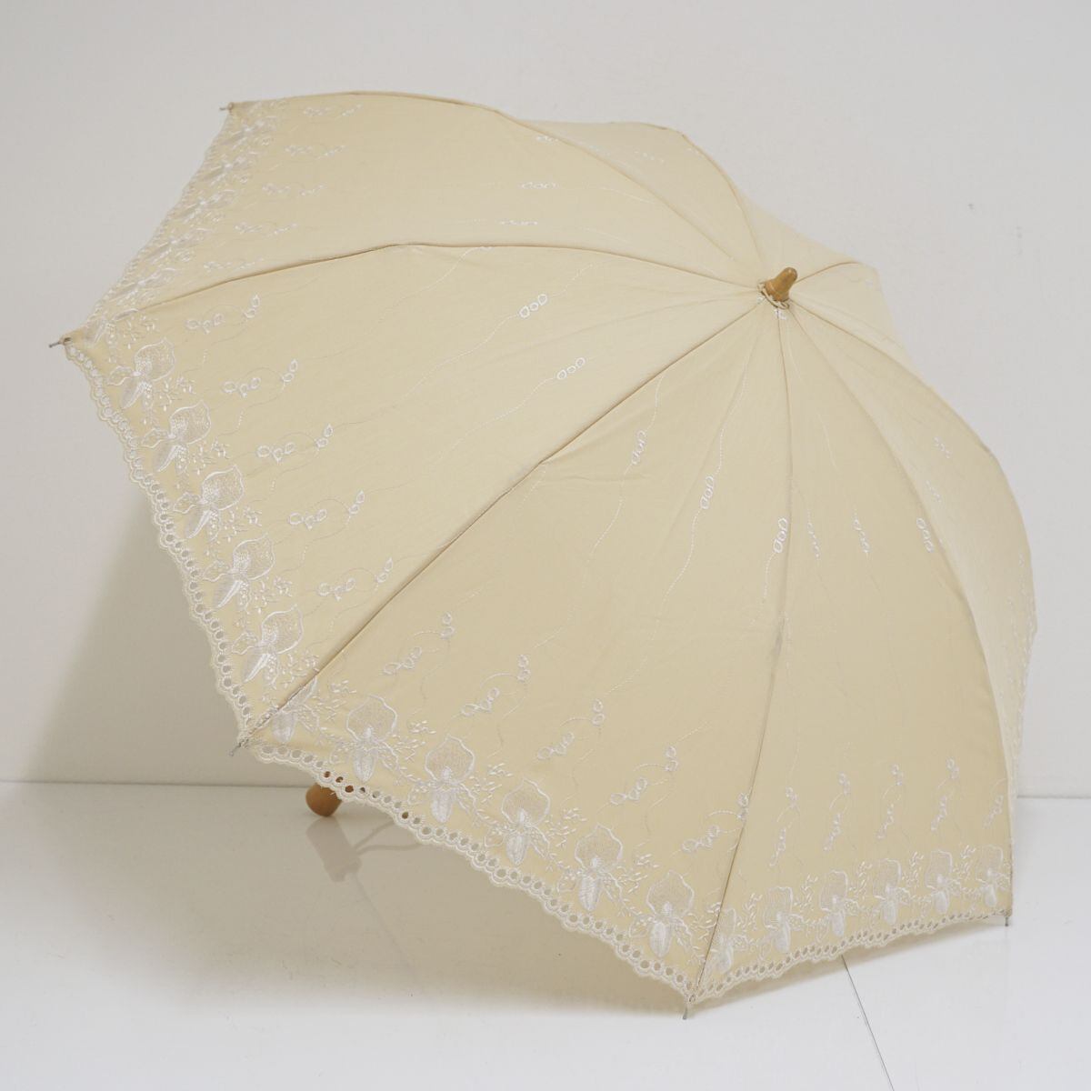 ?小角 高級婦人日傘 USED美品 ベージュ 刺繍 エレガント 高級 50cm FS8607