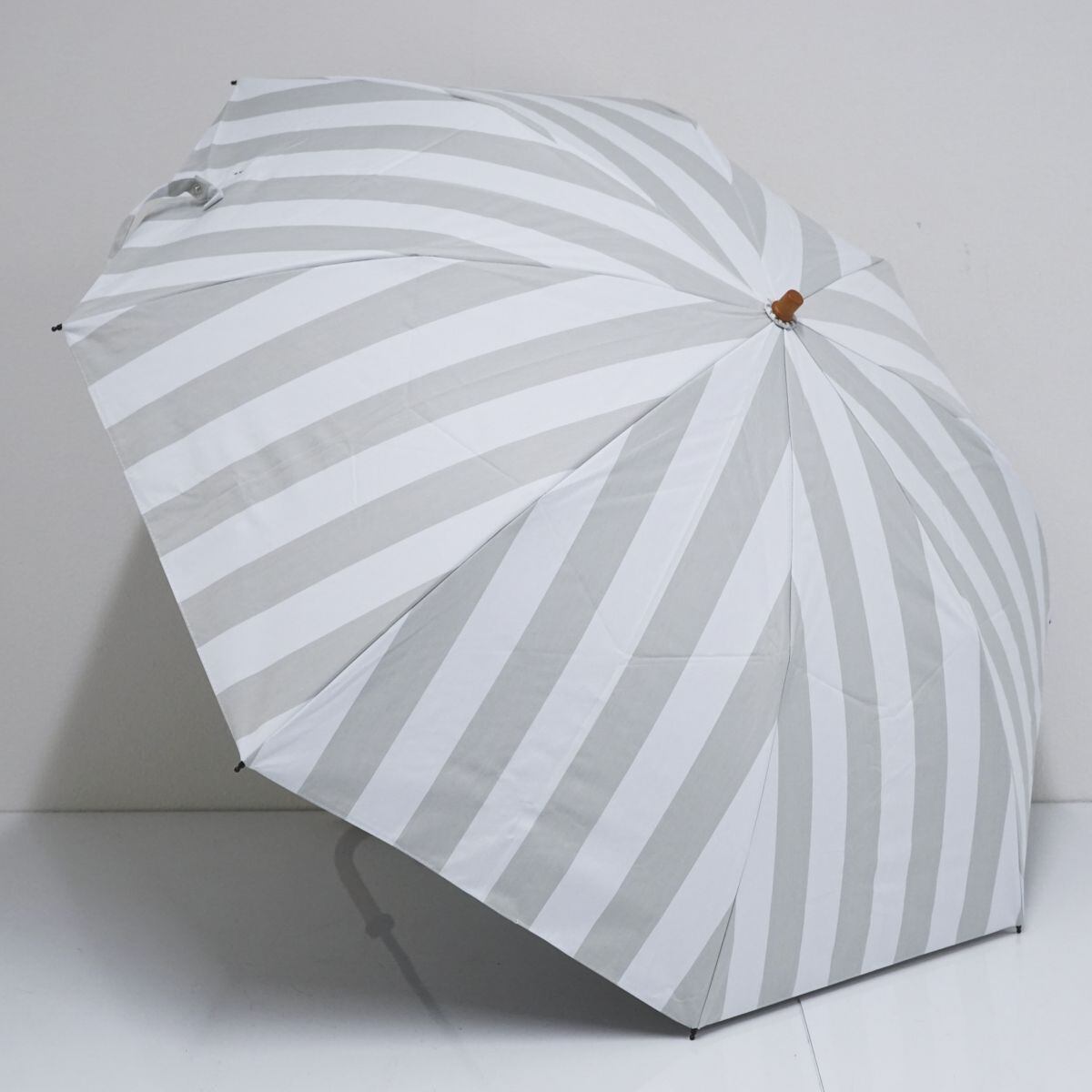 シンプルなストライプデザインの晴雨兼用パラソルです。