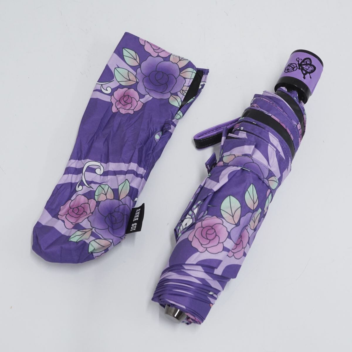 折りたたみ日傘 ANNA SUI アナスイ USED美品 晴雨兼用 パープル 紫 ロゴ ブランド UV 遮光 54cm FS8624