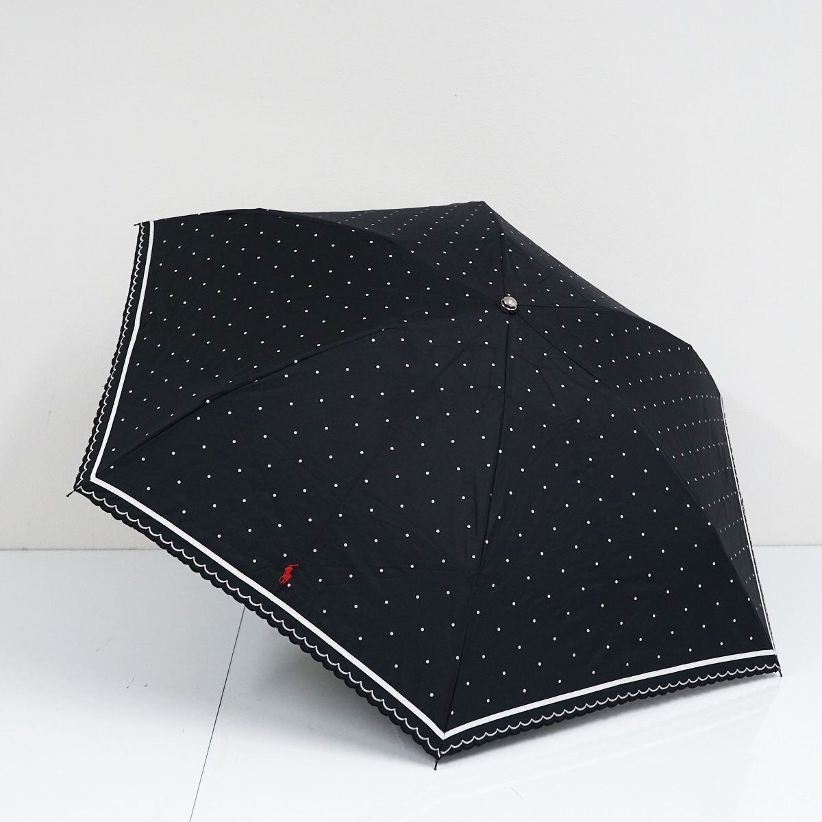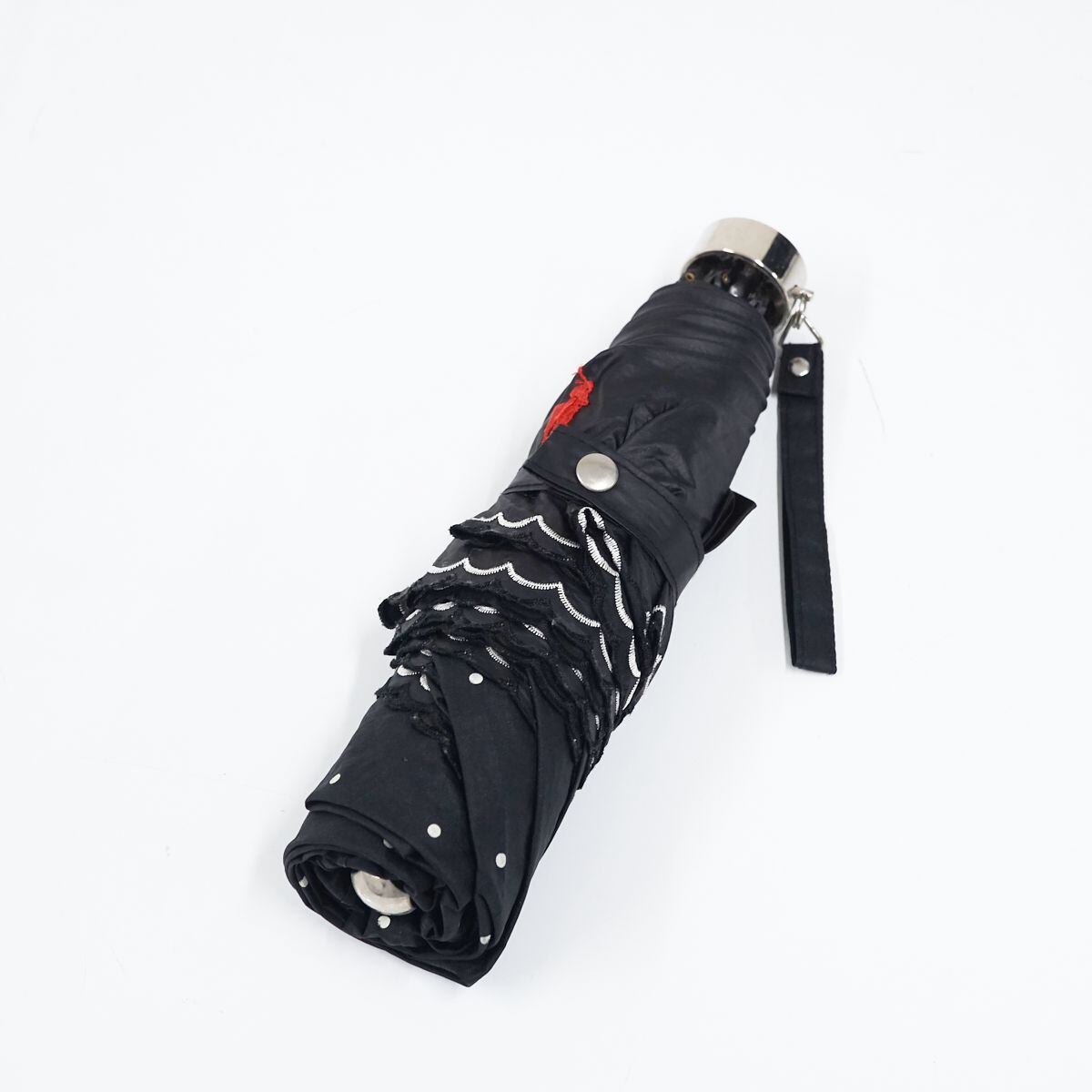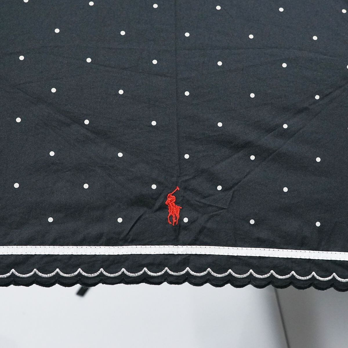 折りたたみ日傘 POLO RALPH LAUREN ポロラルフローレン USED品 晴雨兼用 ポロポニー&スカラ刺繍 ドット ラインボーダー ロゴ 50cm FA8618
