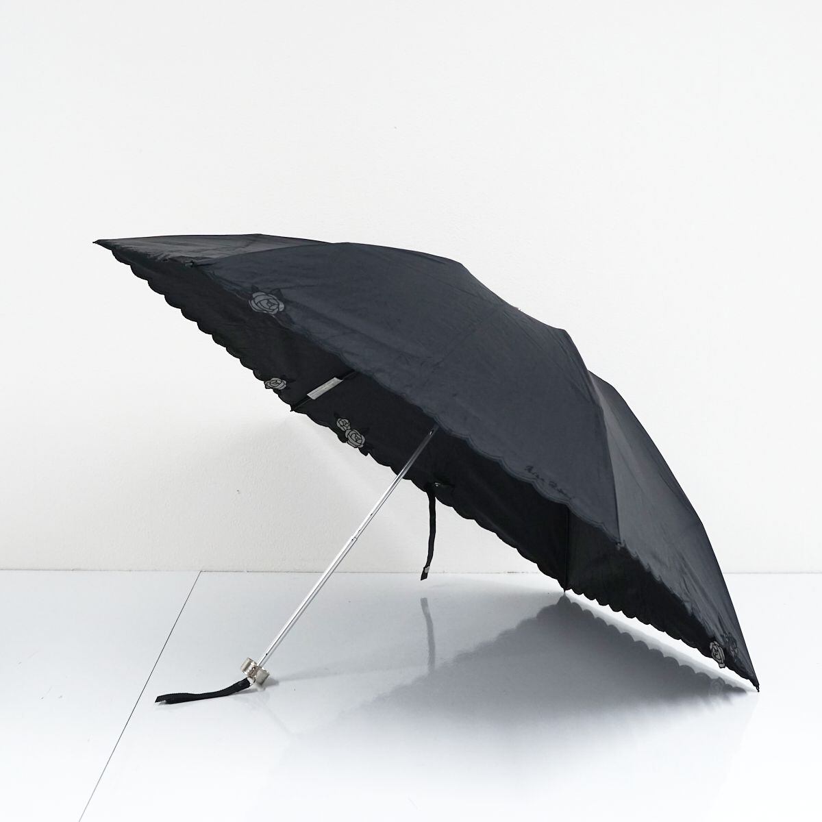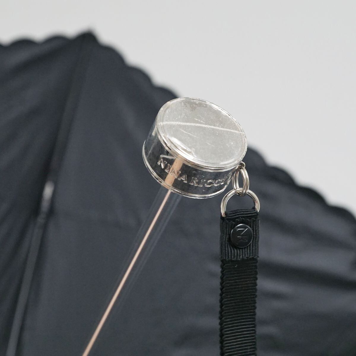 折たたみ日傘 NINA RICCI ニナリッチ USED品 晴雨兼用 ロゴ&オーガンジーフラワー刺繍 スカラップ 軽量 カーボン骨 50cm FA8620