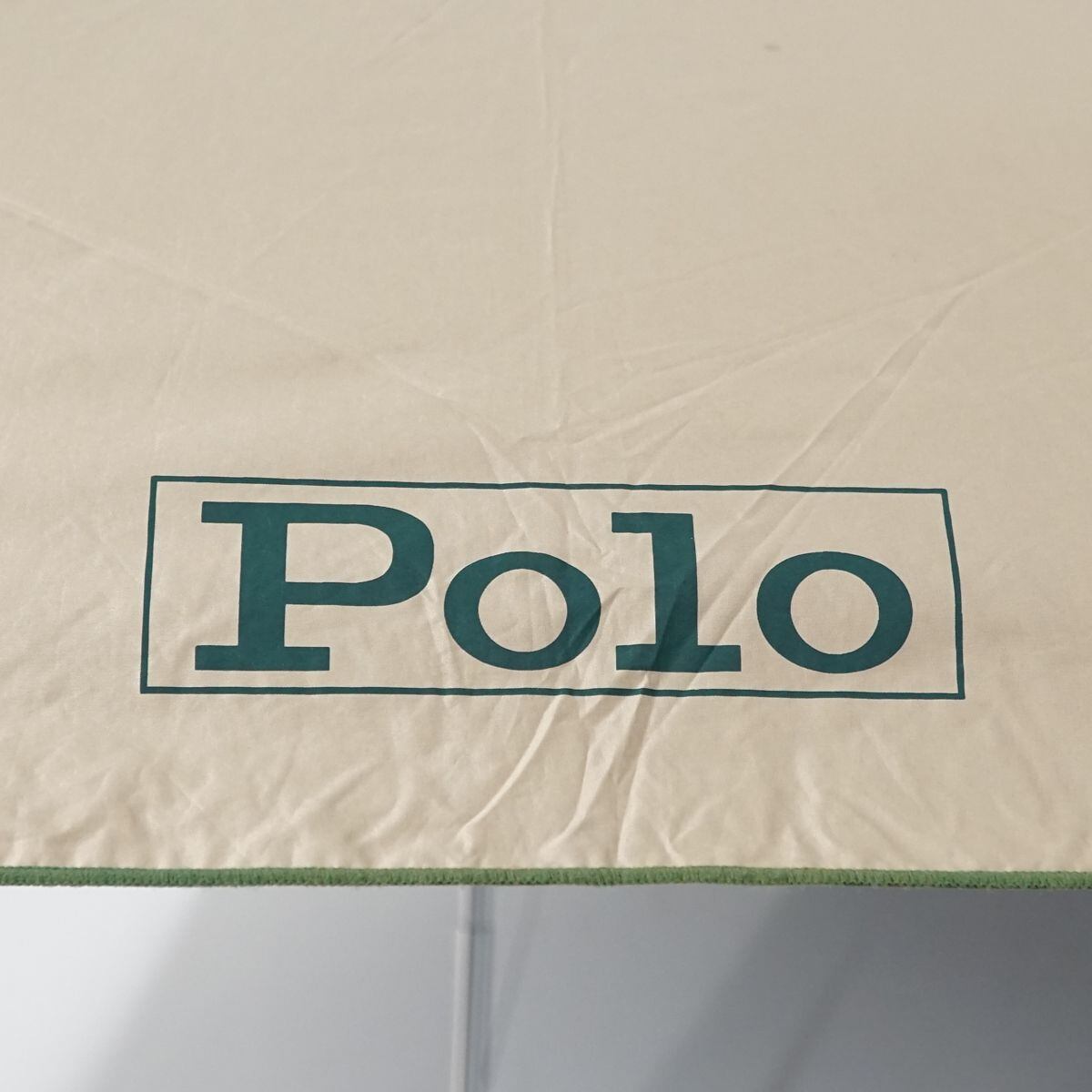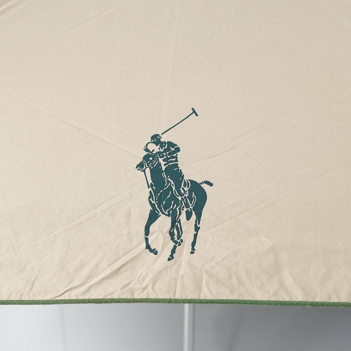 折りたたみ日傘 POLO RALPH LAUREN ポロラルフローレン USED品 晴雨兼用 ポロポニー ロゴプリント パイピング ベージュ 55cm FA8634