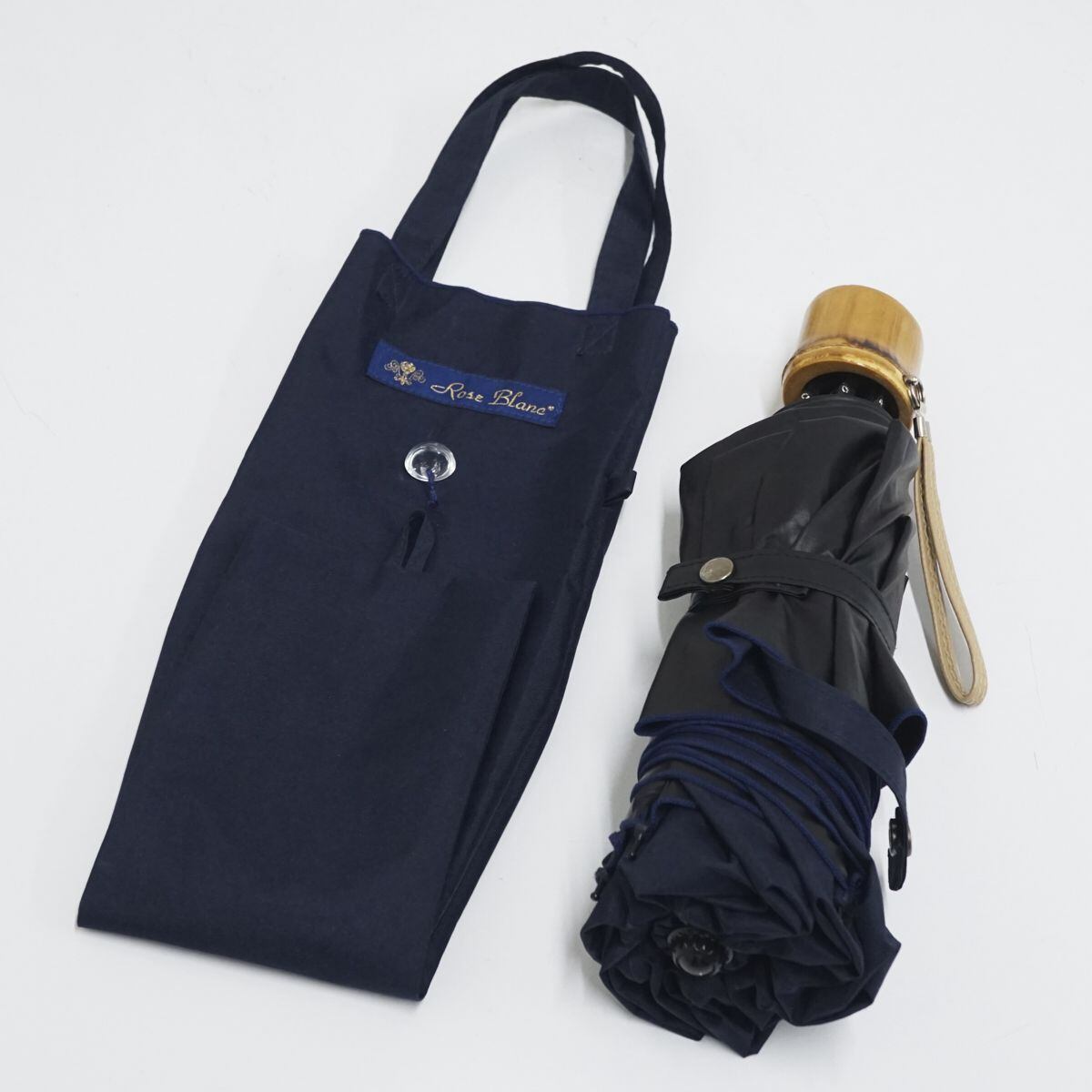 完全遮光折日傘 芦屋ロサブラン USED品 3段折 プレーン ネイビー UV 遮熱 折りたたみ 50cm FS8622