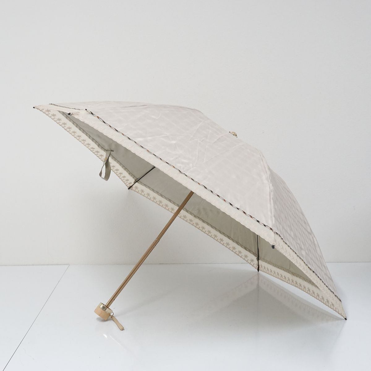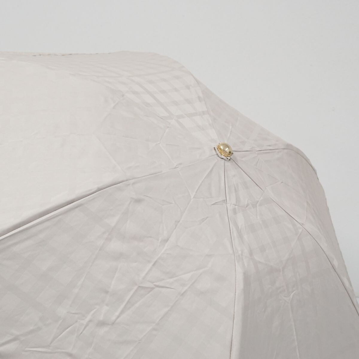 チェック柄が仄かに浮かぶクラシカルなおりたたみパラソルです。