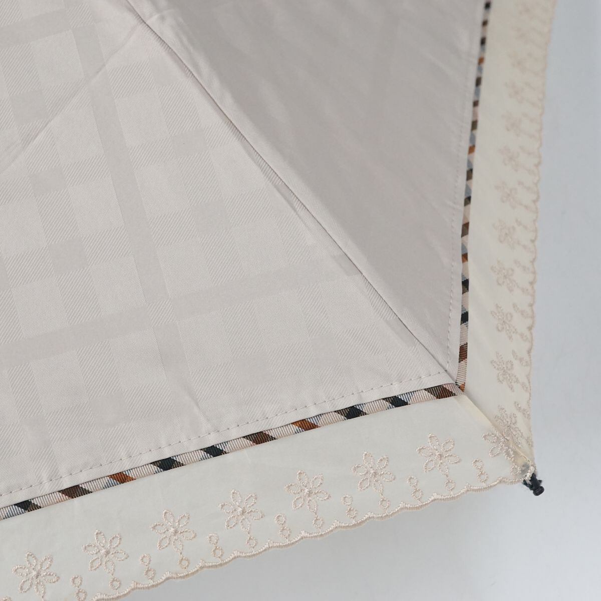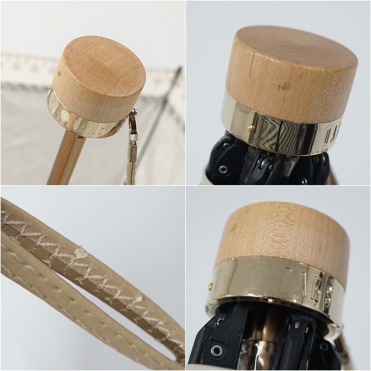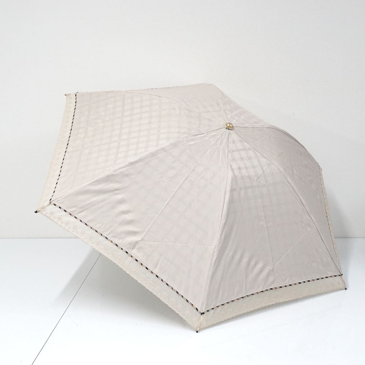 折りたたみ日傘 DAKS ダックス USED品 晴雨兼用 一級遮光 ライトベージュ チェック オーガンジーレース ハウスチェック UV 50cm FA8635
