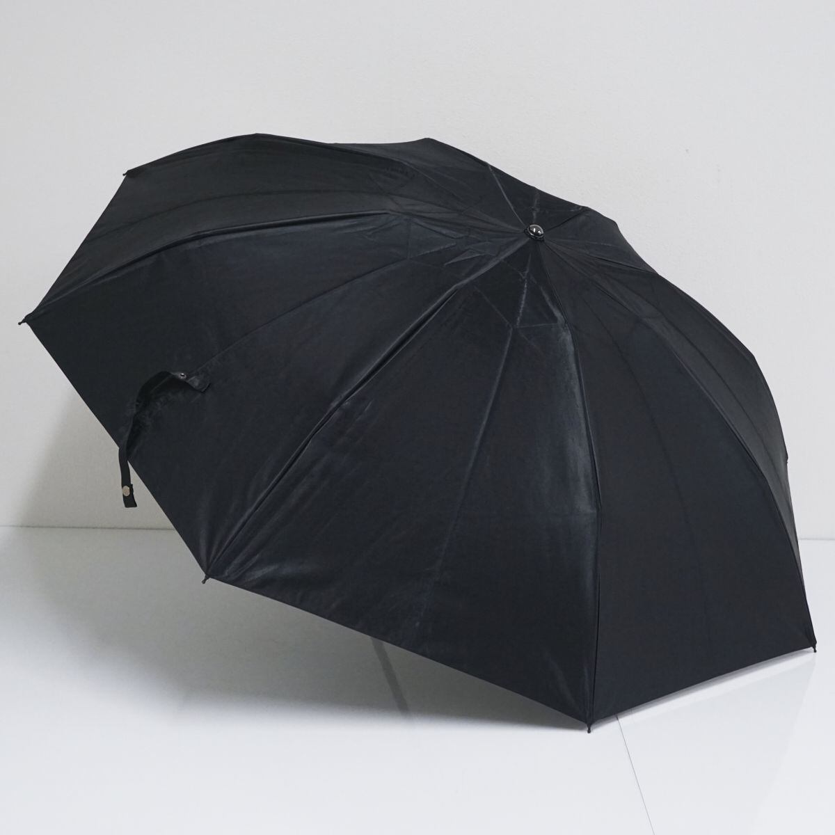 完全遮光折日傘 芦屋ロサブラン USED美品 3段折 黒 ブラック 光沢 UV 遮熱 折りたたみ 55cm FS8644
