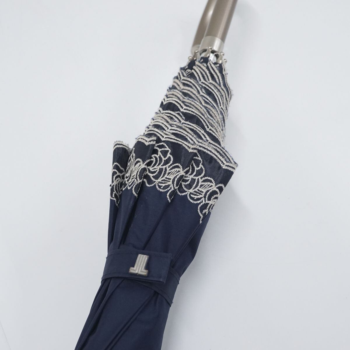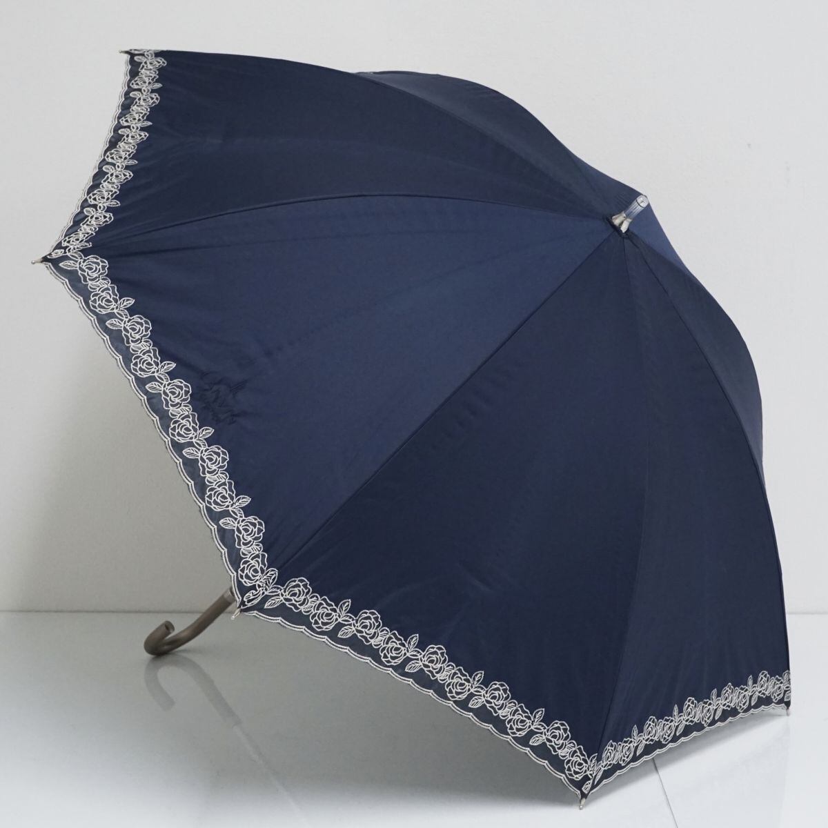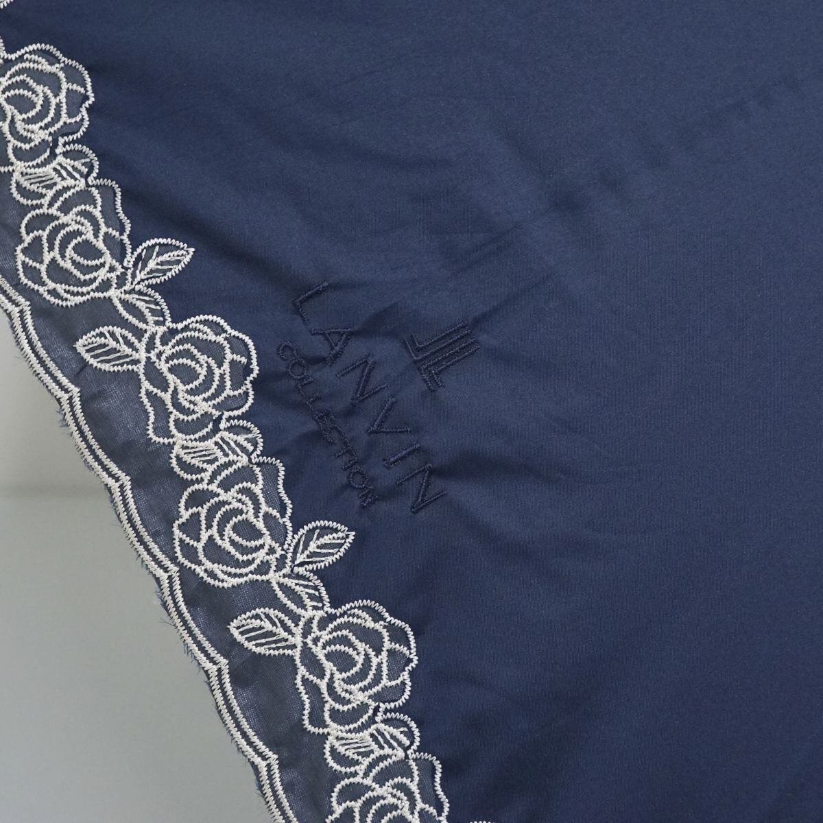 日傘 LANVIN COLLECTION ランバンコレクション USED美品 ネイビー フラワー 刺繍 紺 遮光 晴雨兼用 UV 50cm A1332