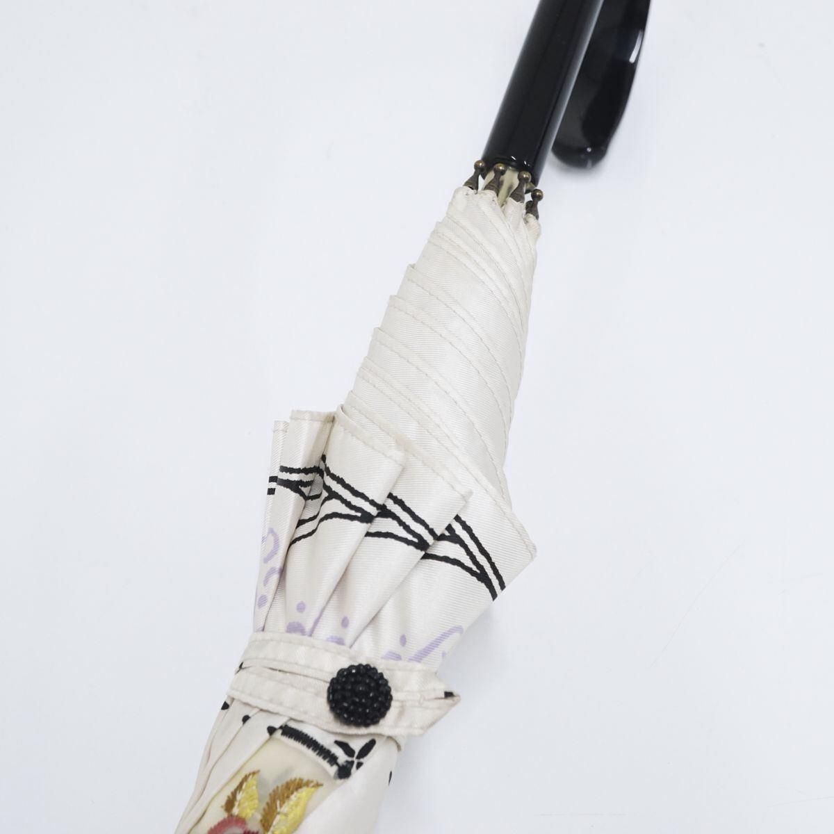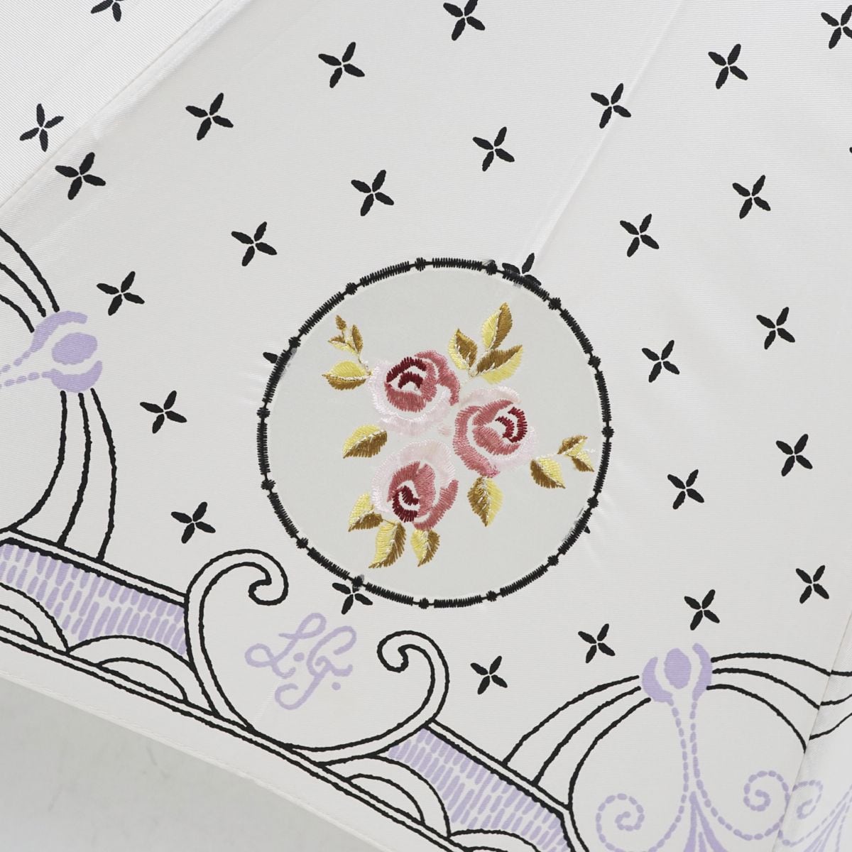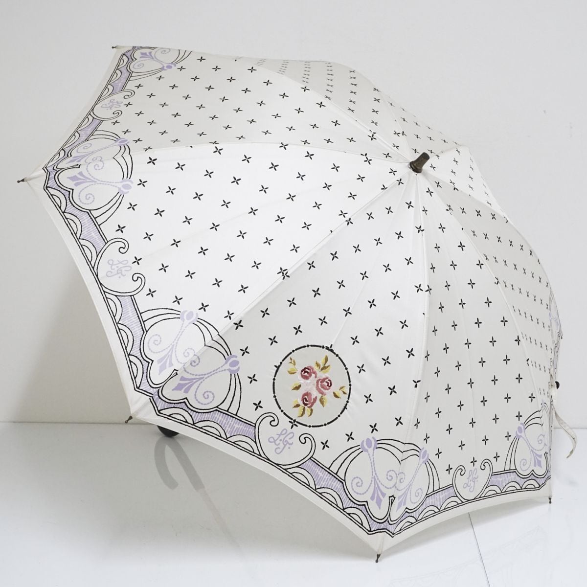 バラの刺繍やエレガントなプリントがおしゃれなパラソルです。