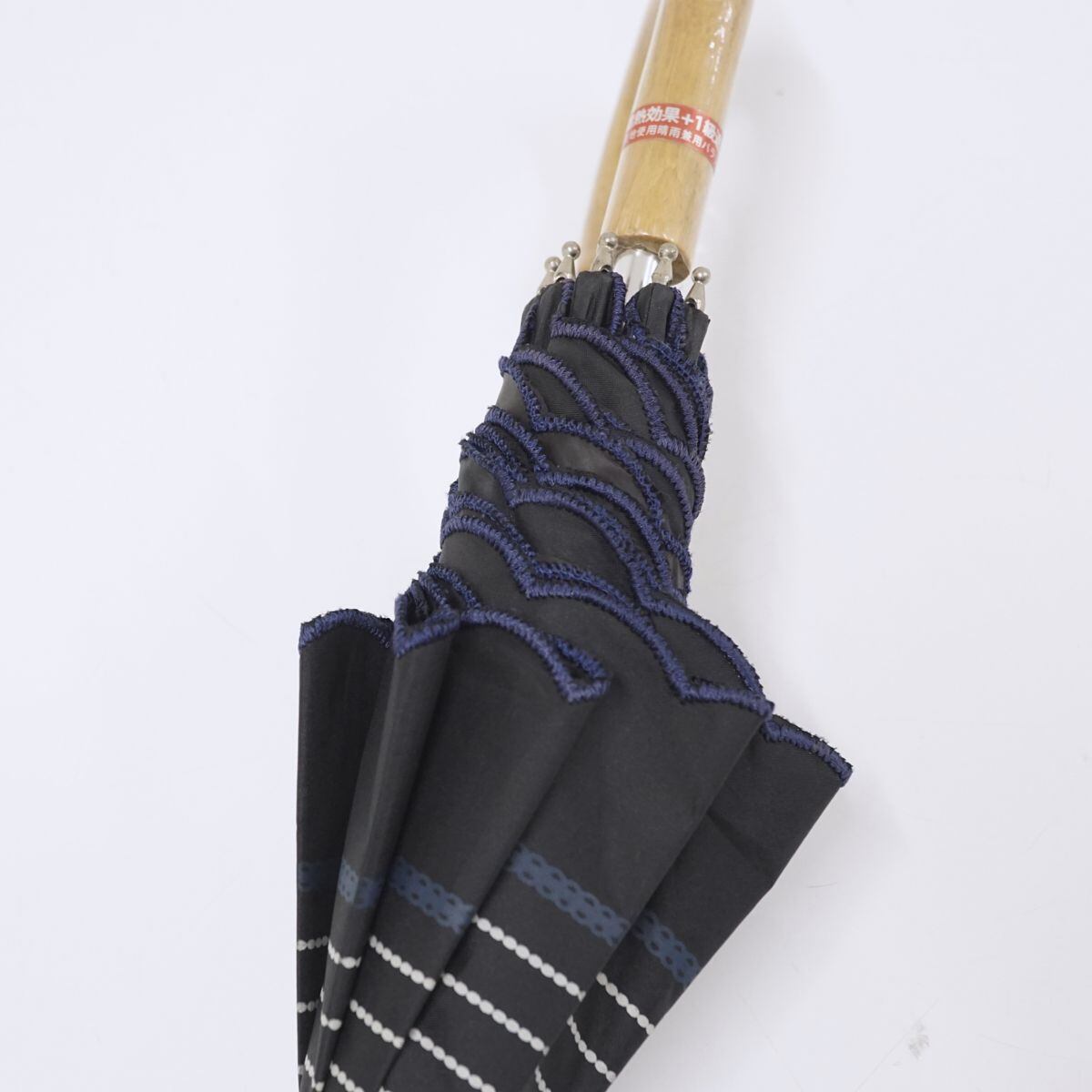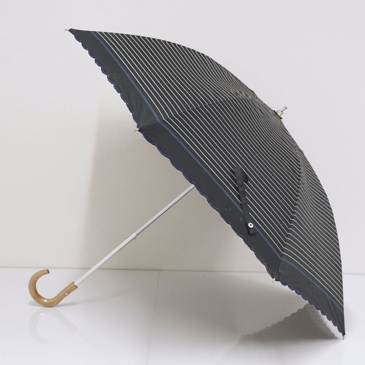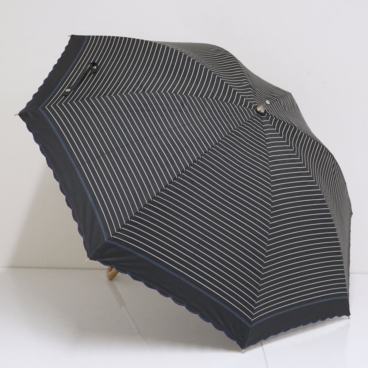 晴雨兼用日傘 MOONBAT USED美品 ブラック 黒 ボーダー 一級遮光 UV 遮熱 シンプル ナチュラル 50cm A1344