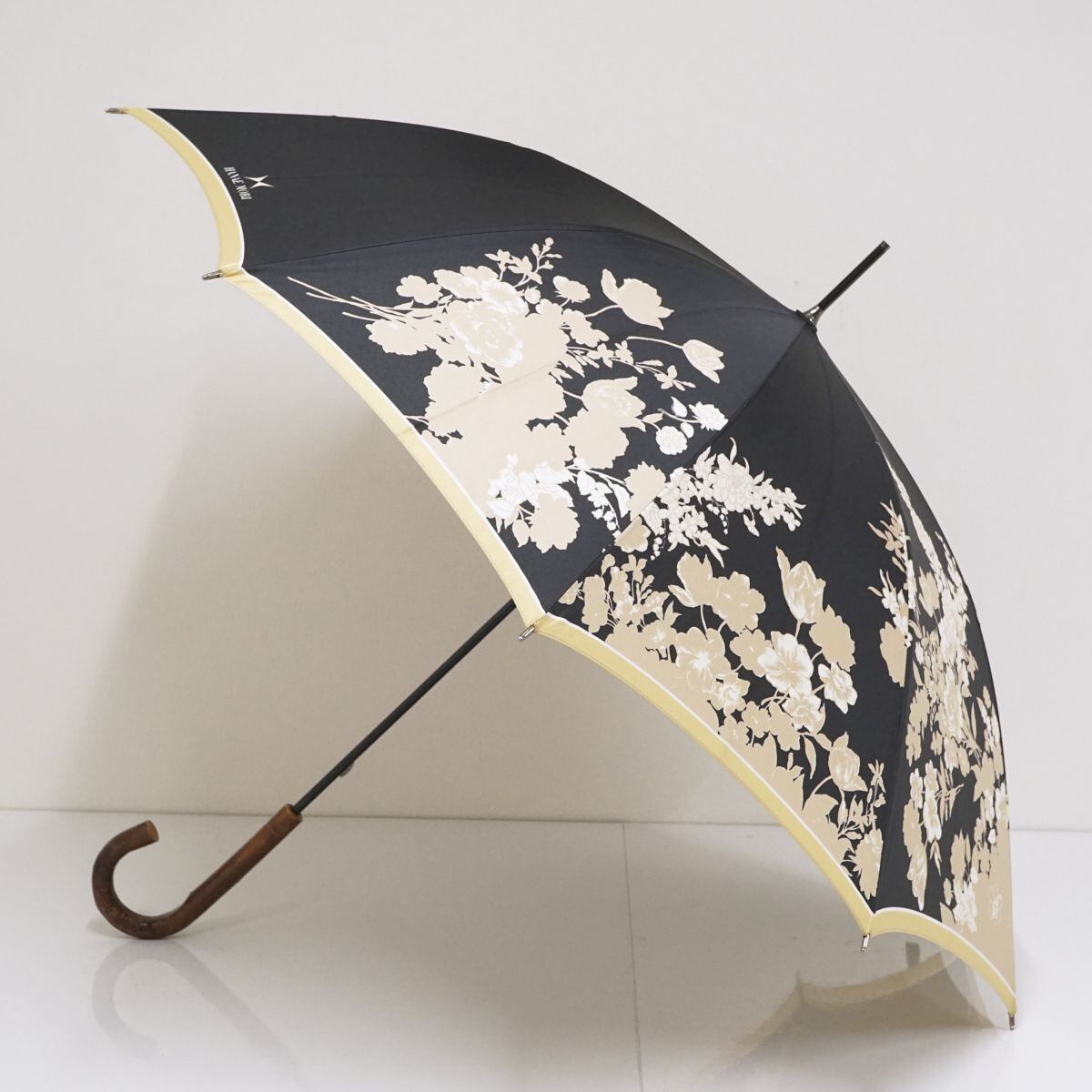 ブラックの生地に花柄をデザインした上品でおしゃれな傘です。