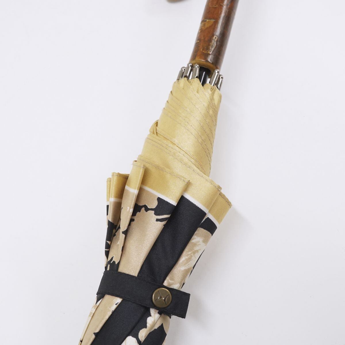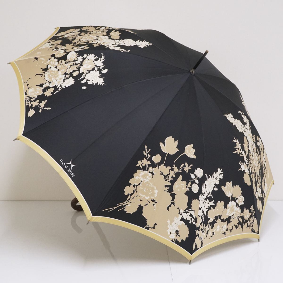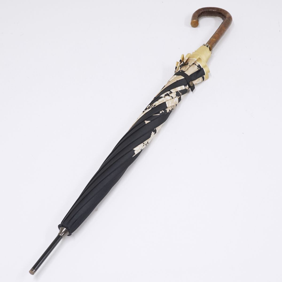 傘 HANAE MORI ハナエモリ USED美品 レディース ブラック 花柄 フラワープリント カーボン骨 桜手元 軽量 ブランド 高級 55cm S1345