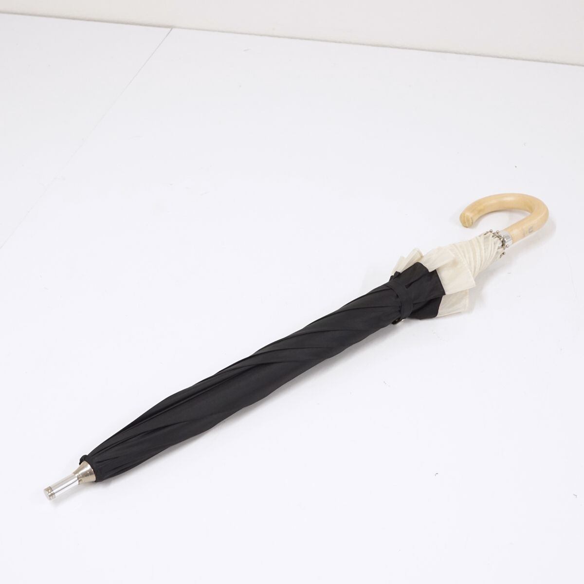 日傘 U by ungaro 晴雨兼用 USED美品 オーガンジー ボタニカル ブラック 刺繍 UV 遮光 遮熱 47cm A1352