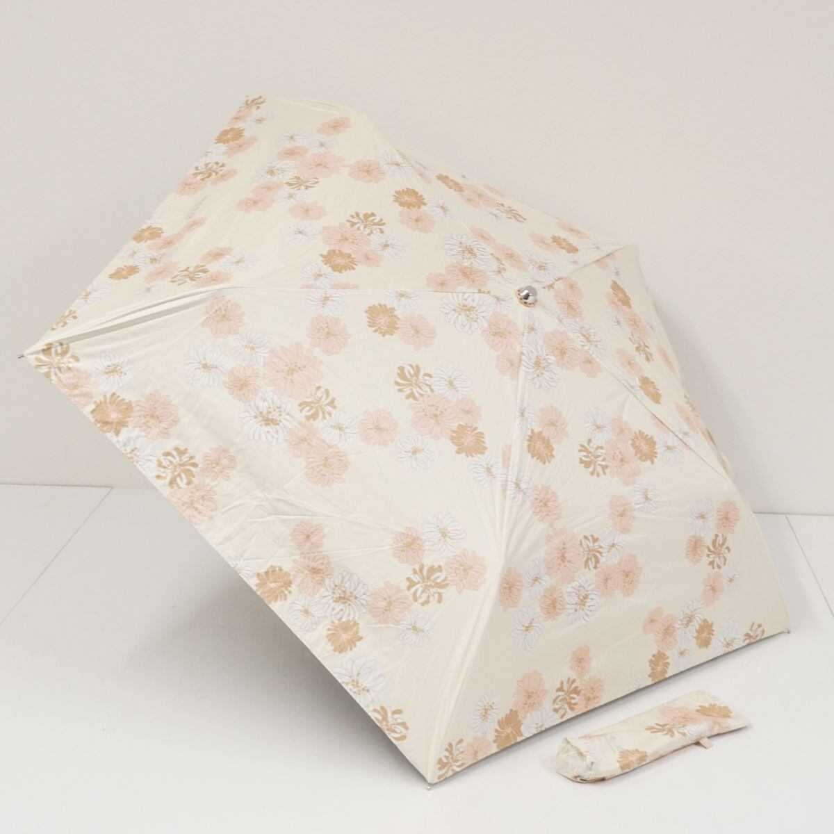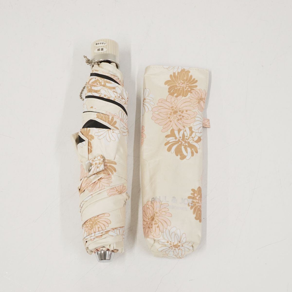 折りたたみ日傘 PAUL&JOE ACCESSOIRES ポール&ジョー アクセソワ USED品 晴雨兼用 クリザンテーム ベージュ 遮光 UVカット 50cm FA8666