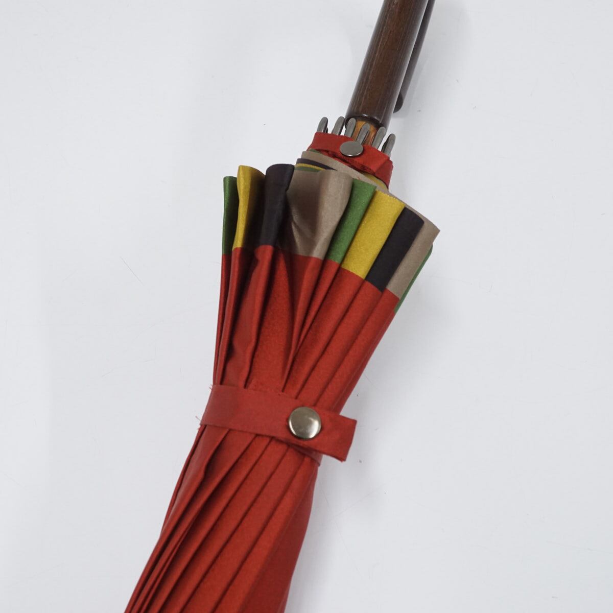 光沢のある甲州織生地の赤色をベースとしてカラフルな縁取りがエレガントなデザインです。