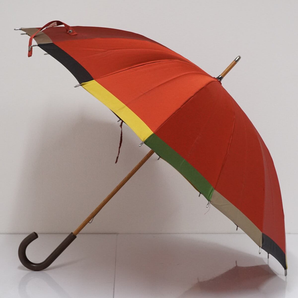 傘 モンブランヤマグチ USED美品 縁変わり レッド 赤 レディース 高級 カーボンフレーム 16本骨 多間 日本製 55cm S2011