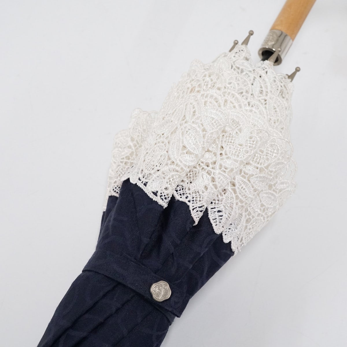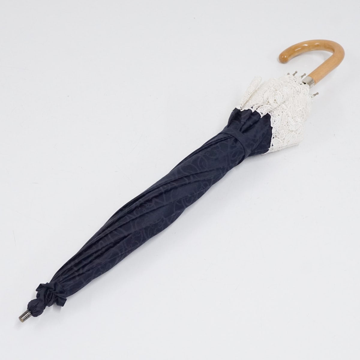 資生堂 日傘 USED美品 フラワー レース ネイビー 高級 晴雨兼用 花椿クラブ 柴田製 非売品 軽量 グラス骨 47cm S3041