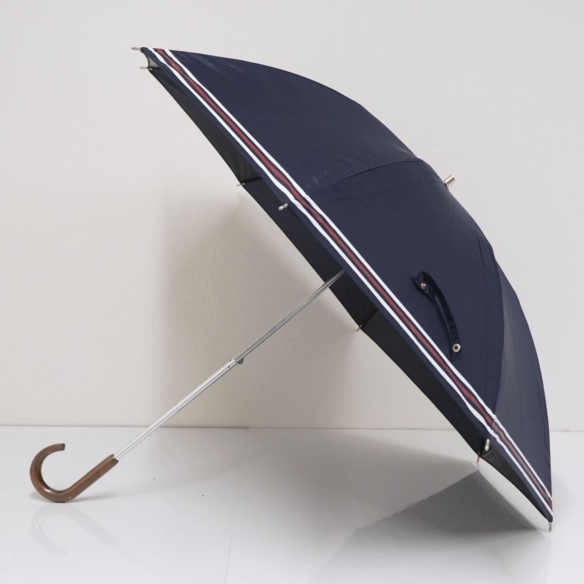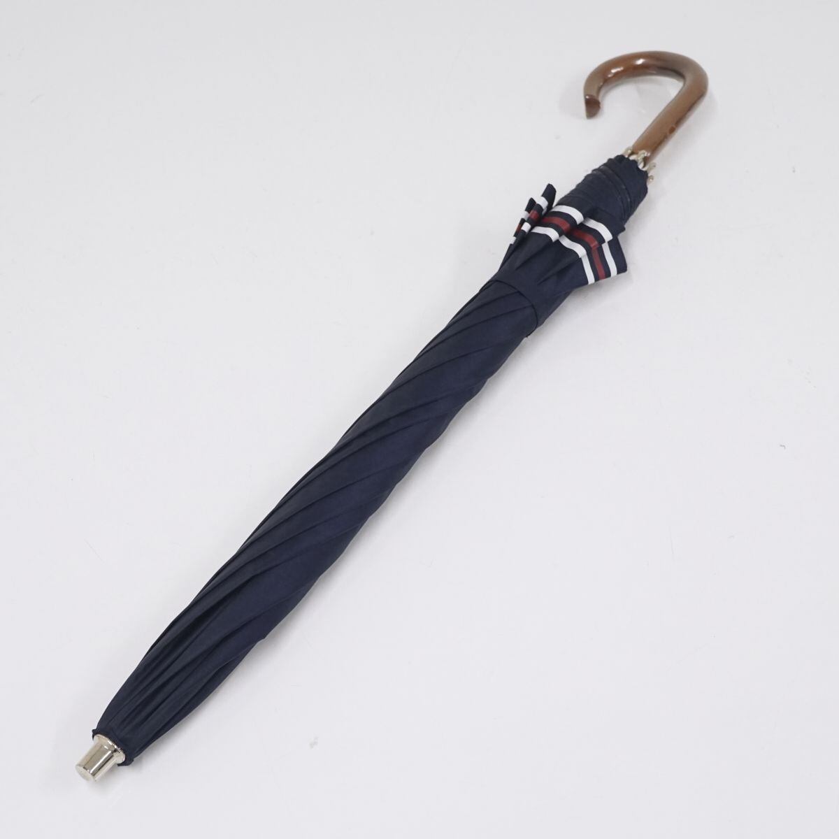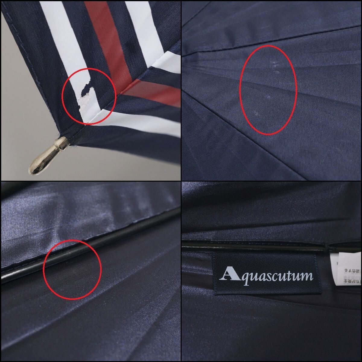 晴雨兼用日傘 Aquascutum アクアスキュータム USED美品 ネイビー ボーダー グラス骨 遮光 UV 軽量 50cm A1372