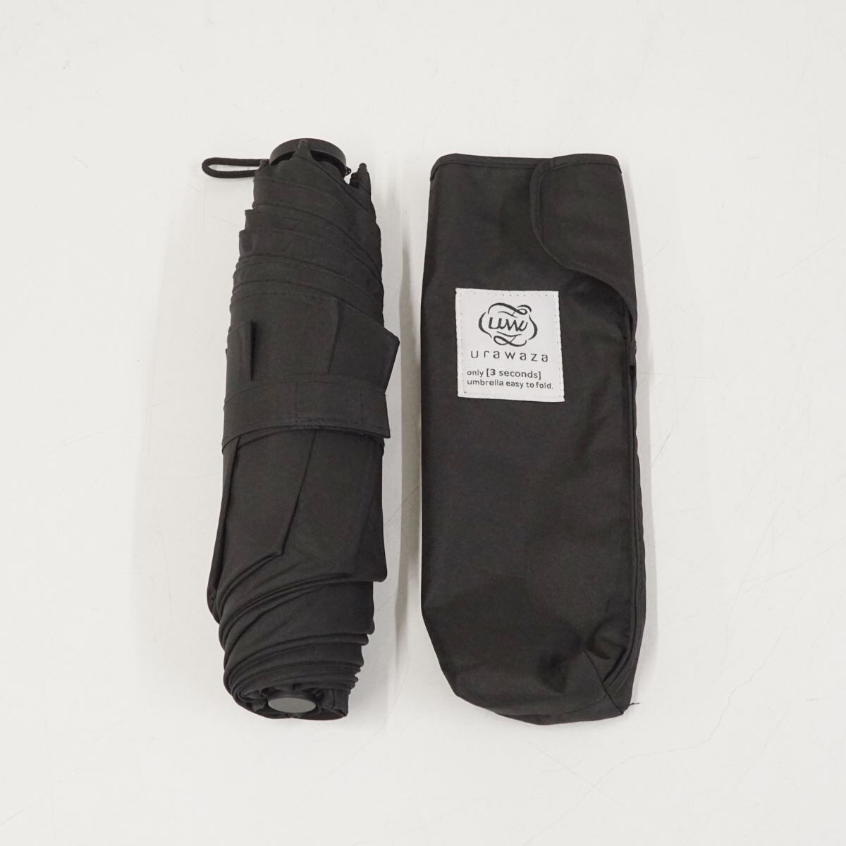 折りたたみ傘 urawaza ウラワザ USED美品 3秒で折りたためる 雨傘 無地 プレーン ブラック 黒 はっ水 晴雨兼用 55cm FA8668