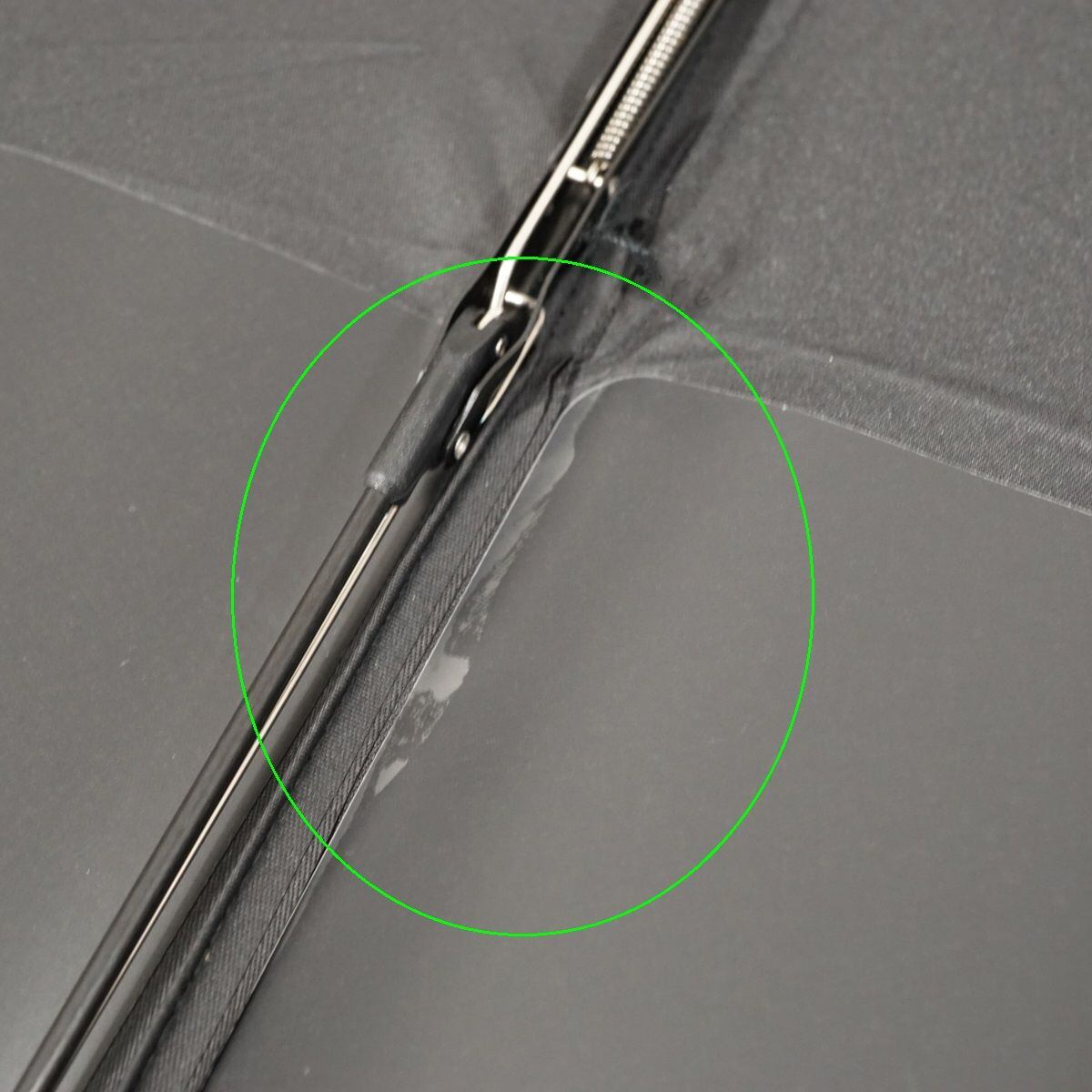 傘の裏側に貼られたPET 樹脂素材の特殊シートがガイドの役割を果たし、シワにならずに素早く生地を巻くことができます。