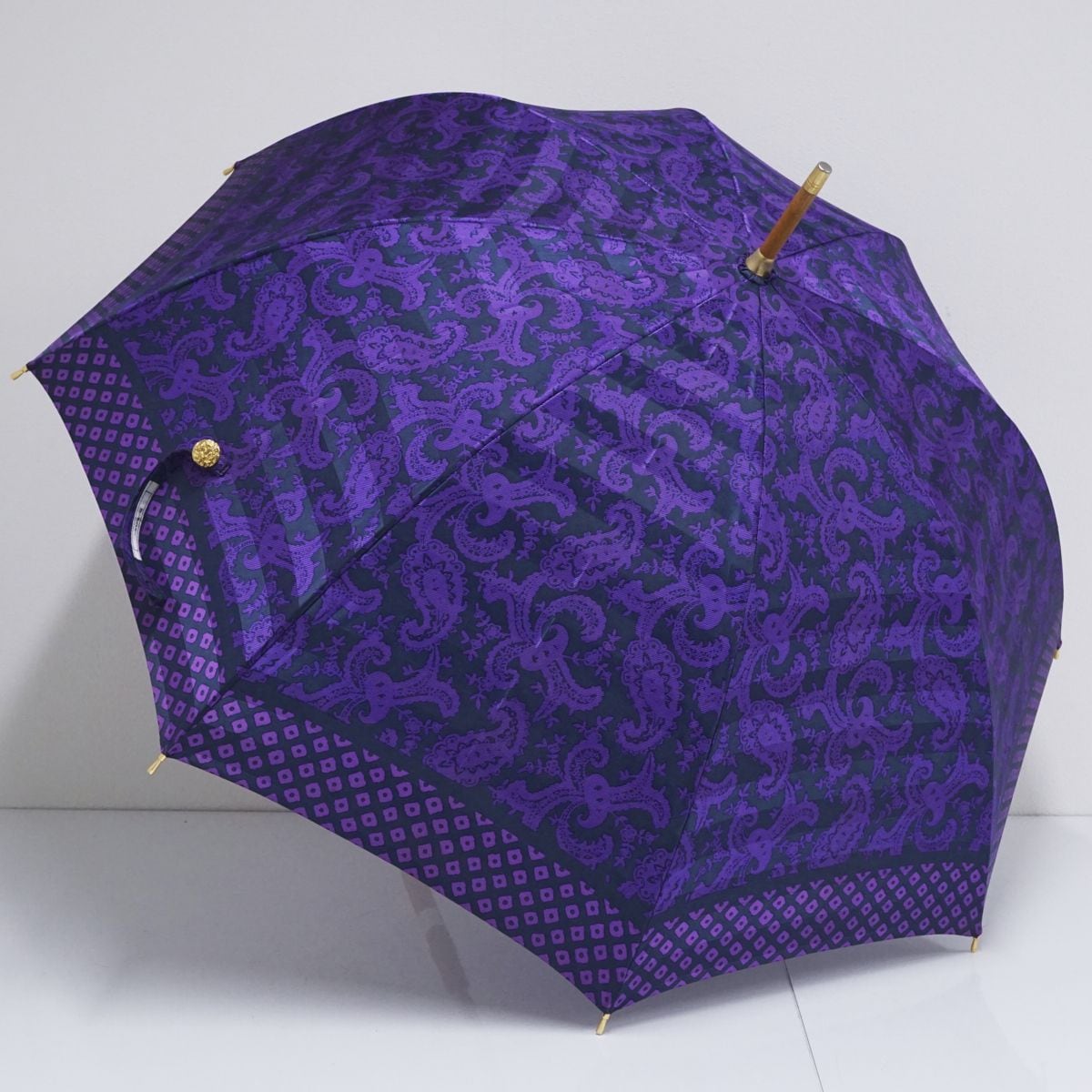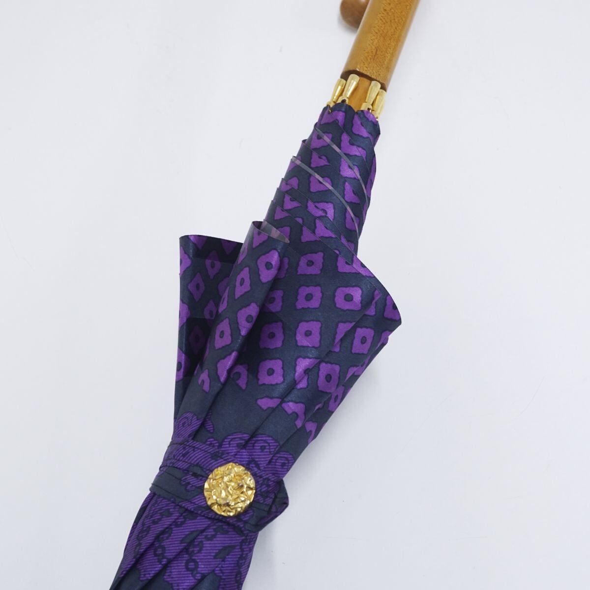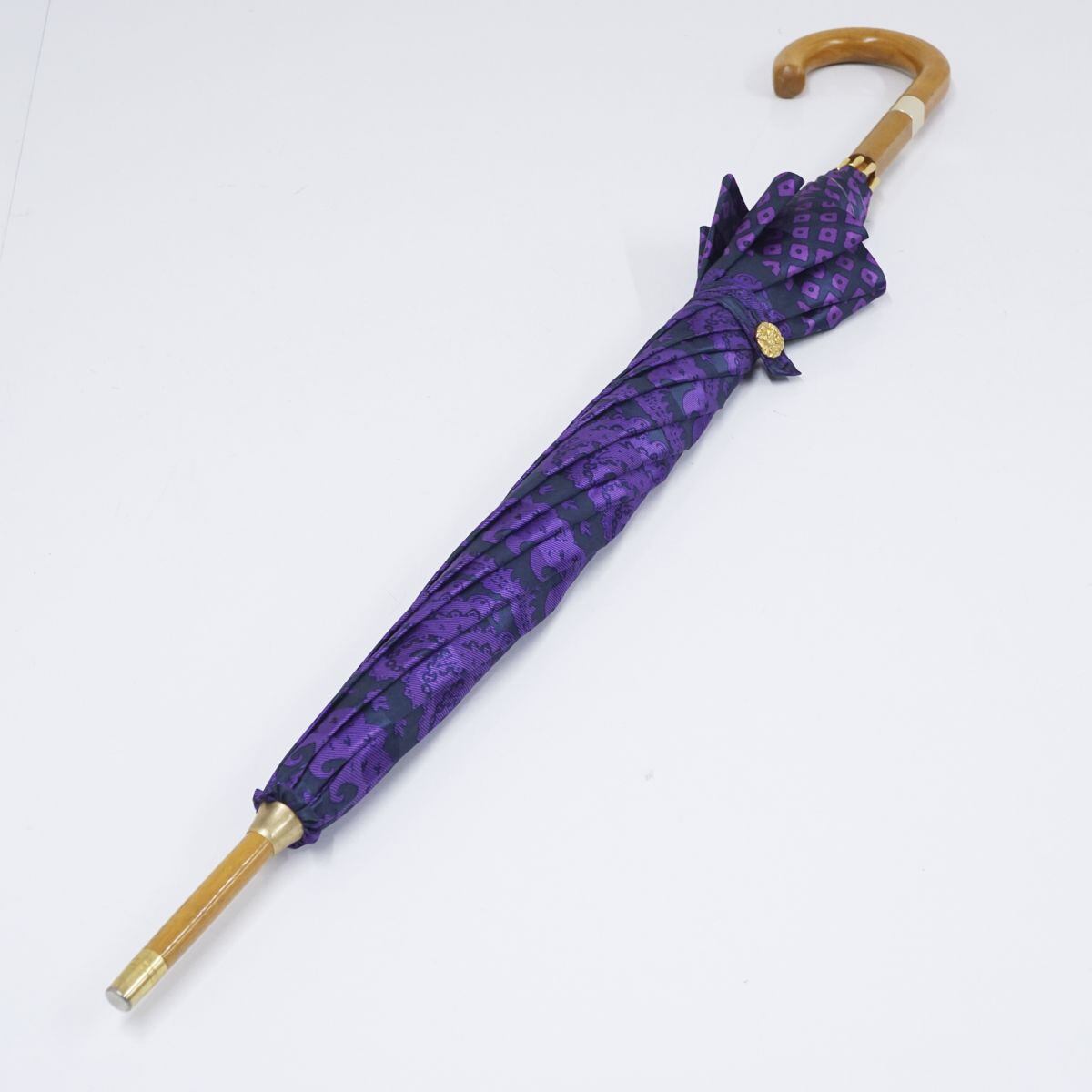 傘 YSL イヴサンローラン USED美品 レディース 長傘 パープル ペイズリー 個性的 ブランド おしゃれ 60cm A1381