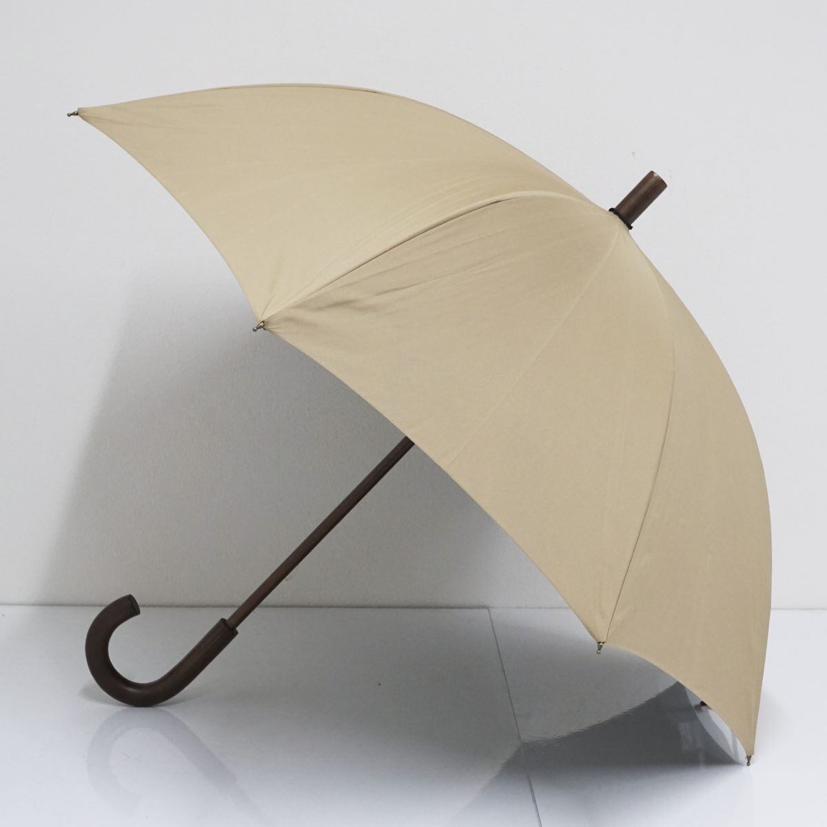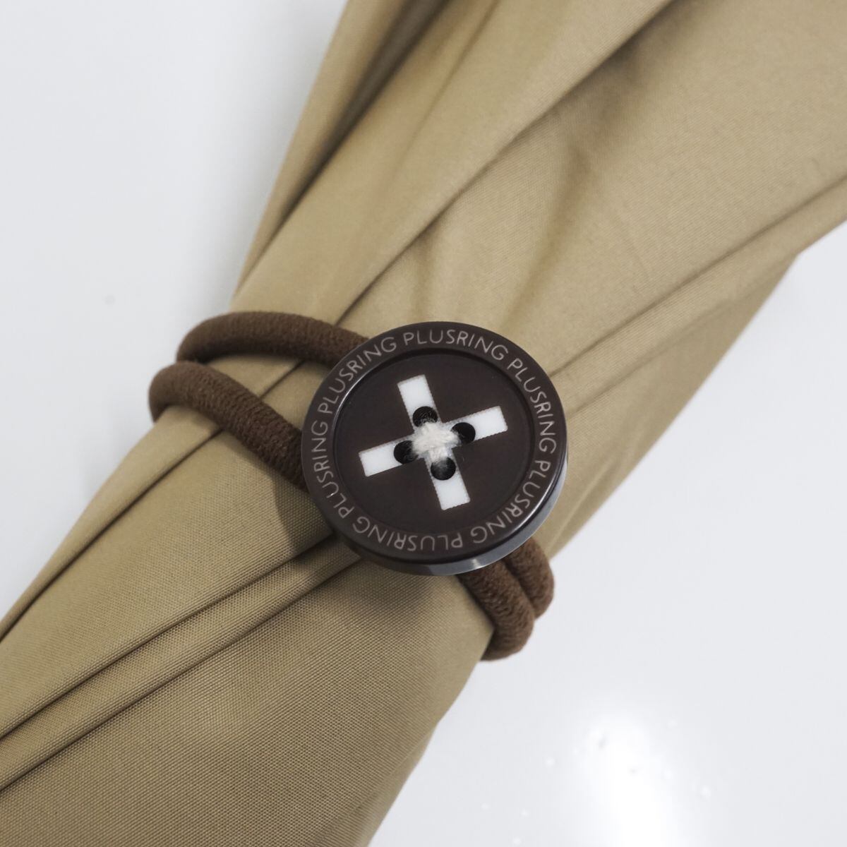 晴雨兼用傘 +RING プラスリング USED美品 ベージュ 無地 ボタン ロゴ 男女兼用 52cm A1383