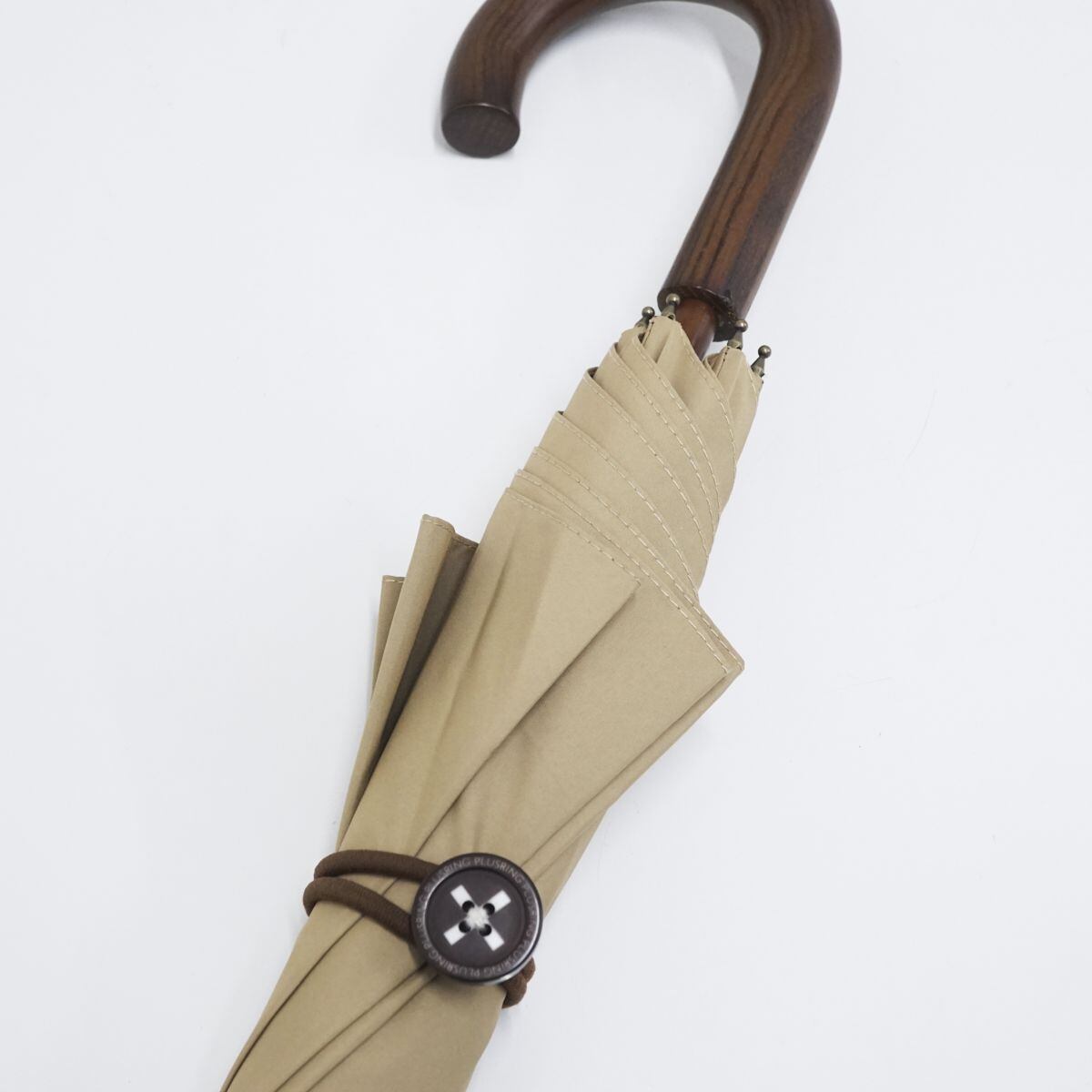 また、傘を束ねる箇所(ストラップ)がボタンとバンドの構成になっています。