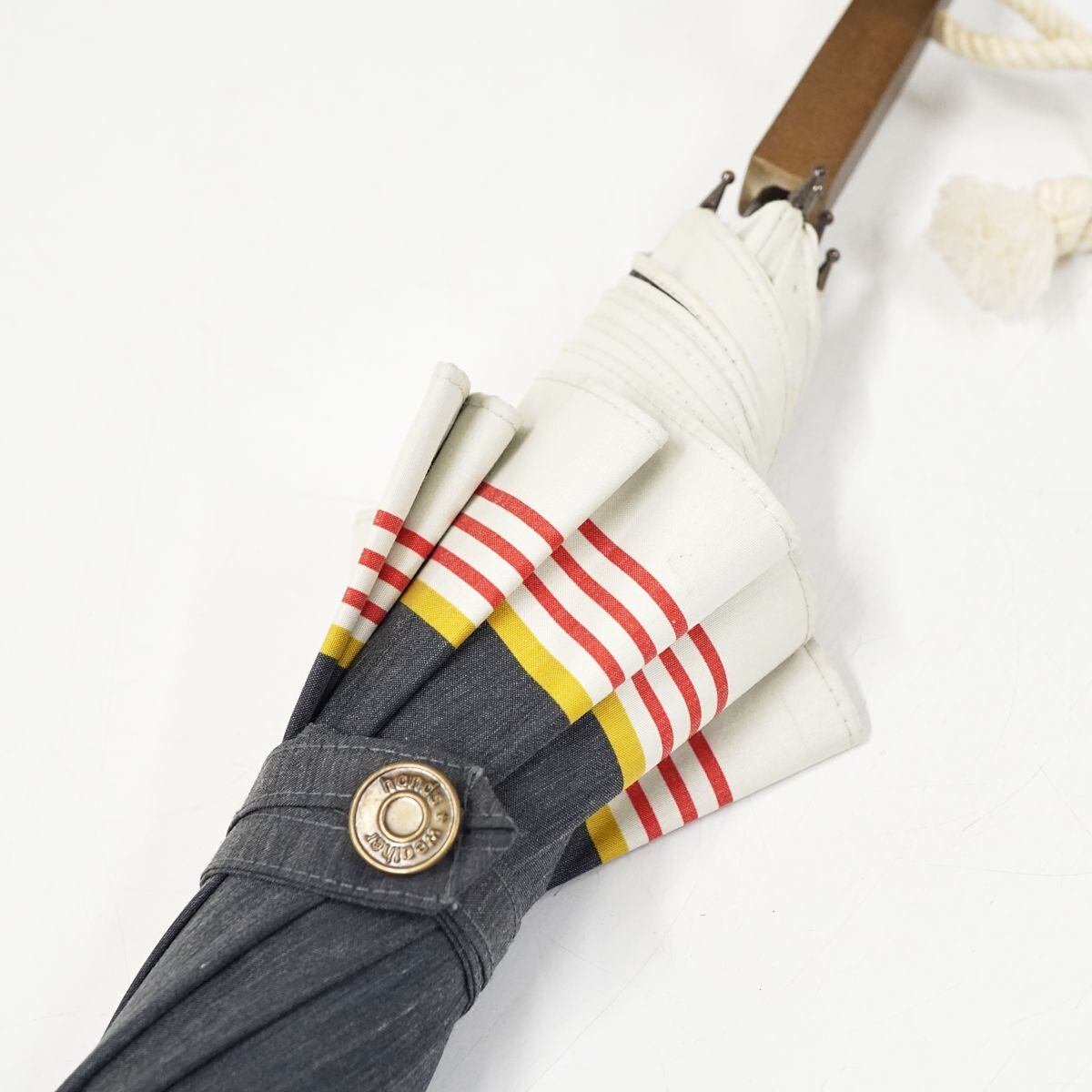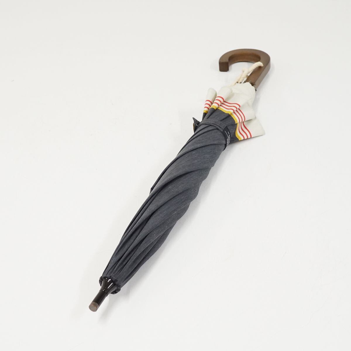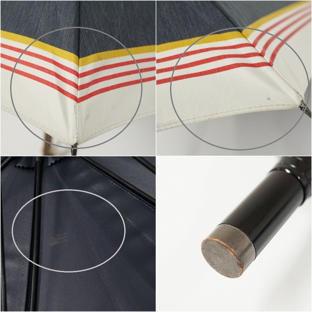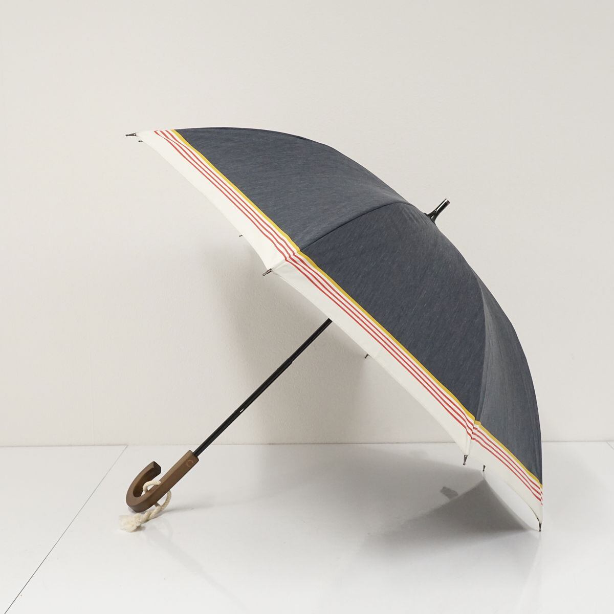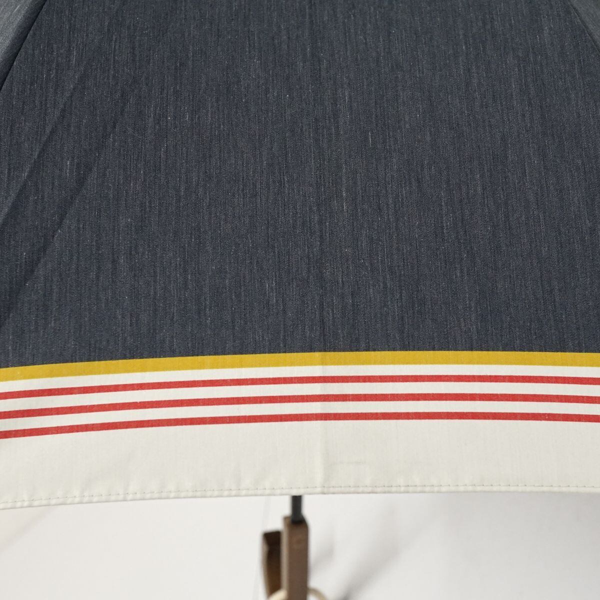 晴雨兼用日傘 hands+ ハンズプラス USED品 ラインボーダー マルチカラー UV 木製手元 グラス骨 遮光 UV 50cm A1391