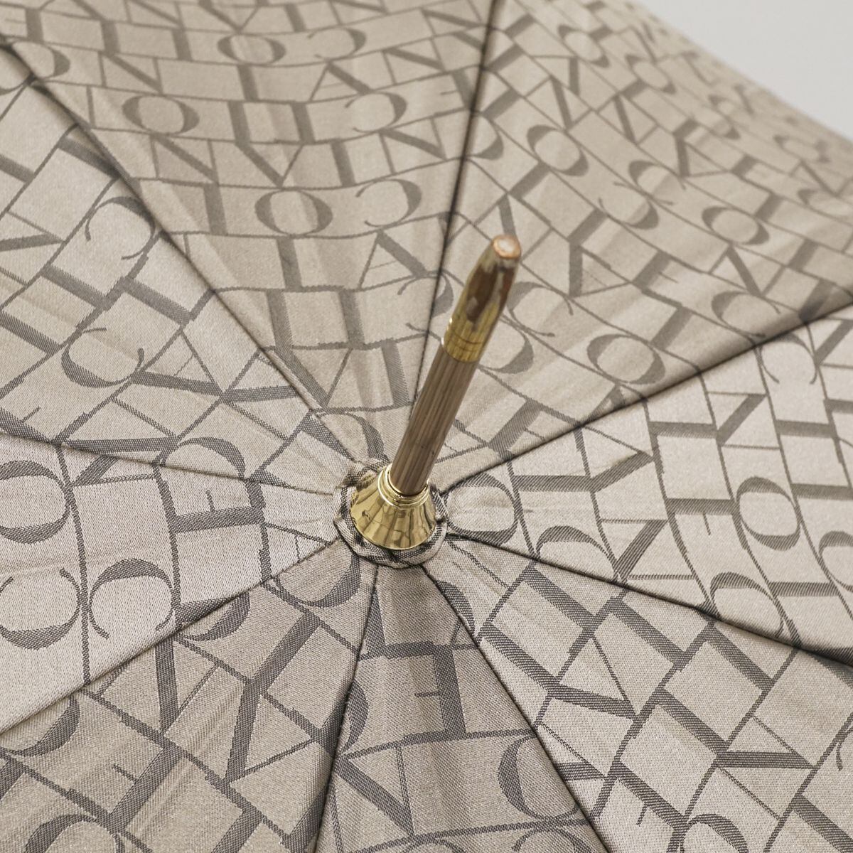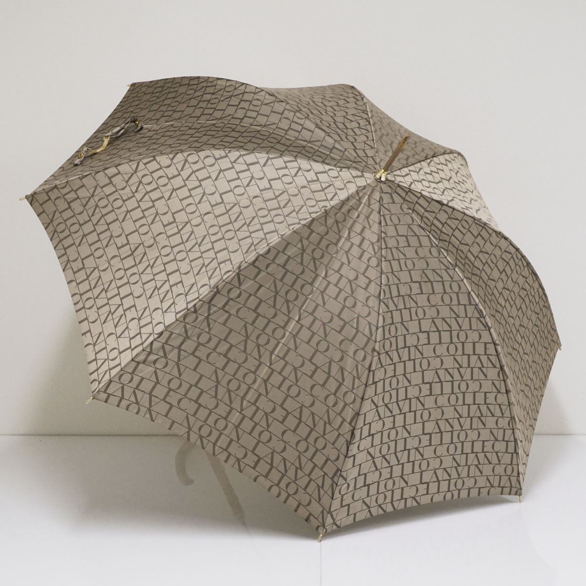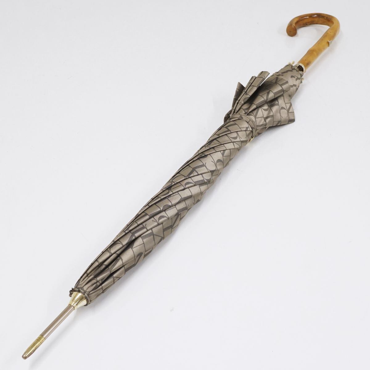 LANVIN COLLECTION ランバンコレクション 耐風傘 USED美品 ロゴ ジャガード 天然木手元 グラス骨 58cm A1370