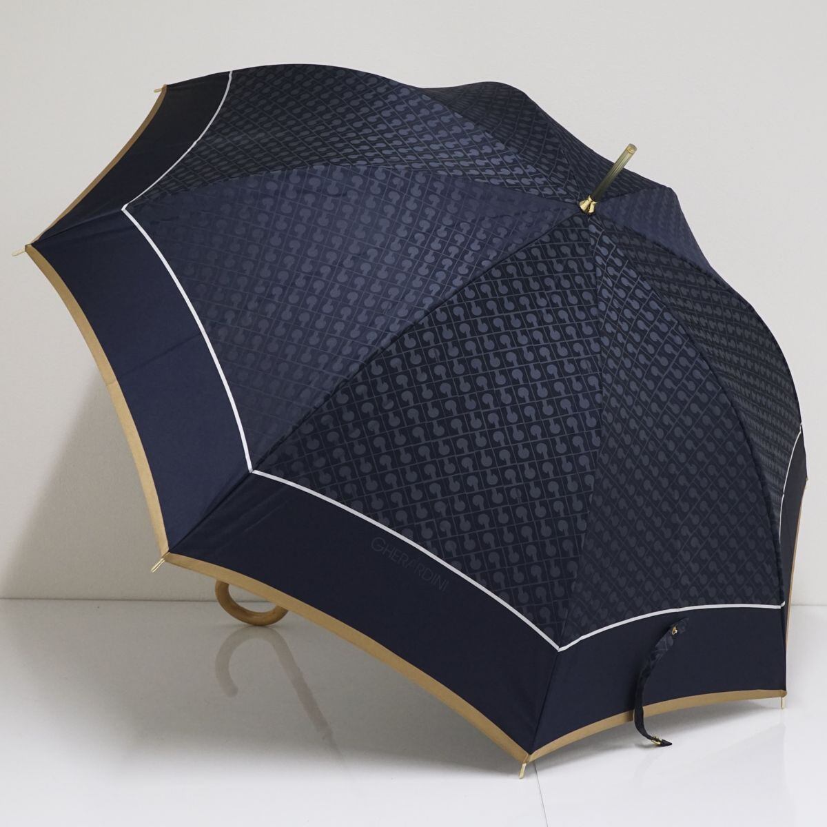 傘 GHERARDINI ゲラルディーニ USED美品 モノグラム ジャガード 日本製 木製手元 グラス骨 軽量 60cm S1399