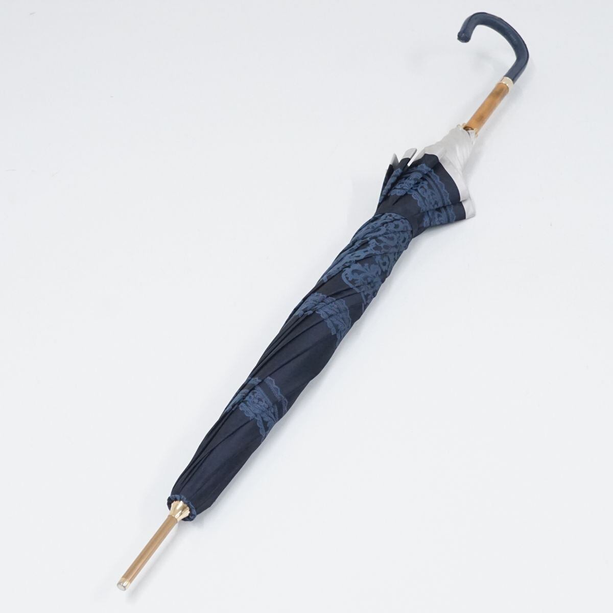 傘 LANVIN COLLECTION ランバンコレクション USED美品 ネイビー クラシック レース グラス骨 レザー手元 58cm S1591