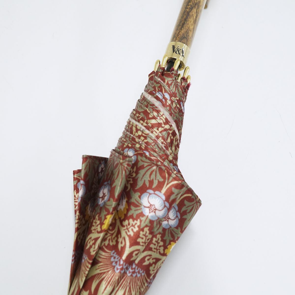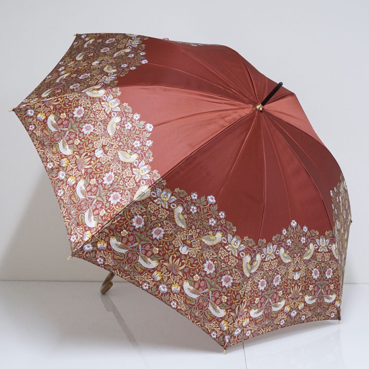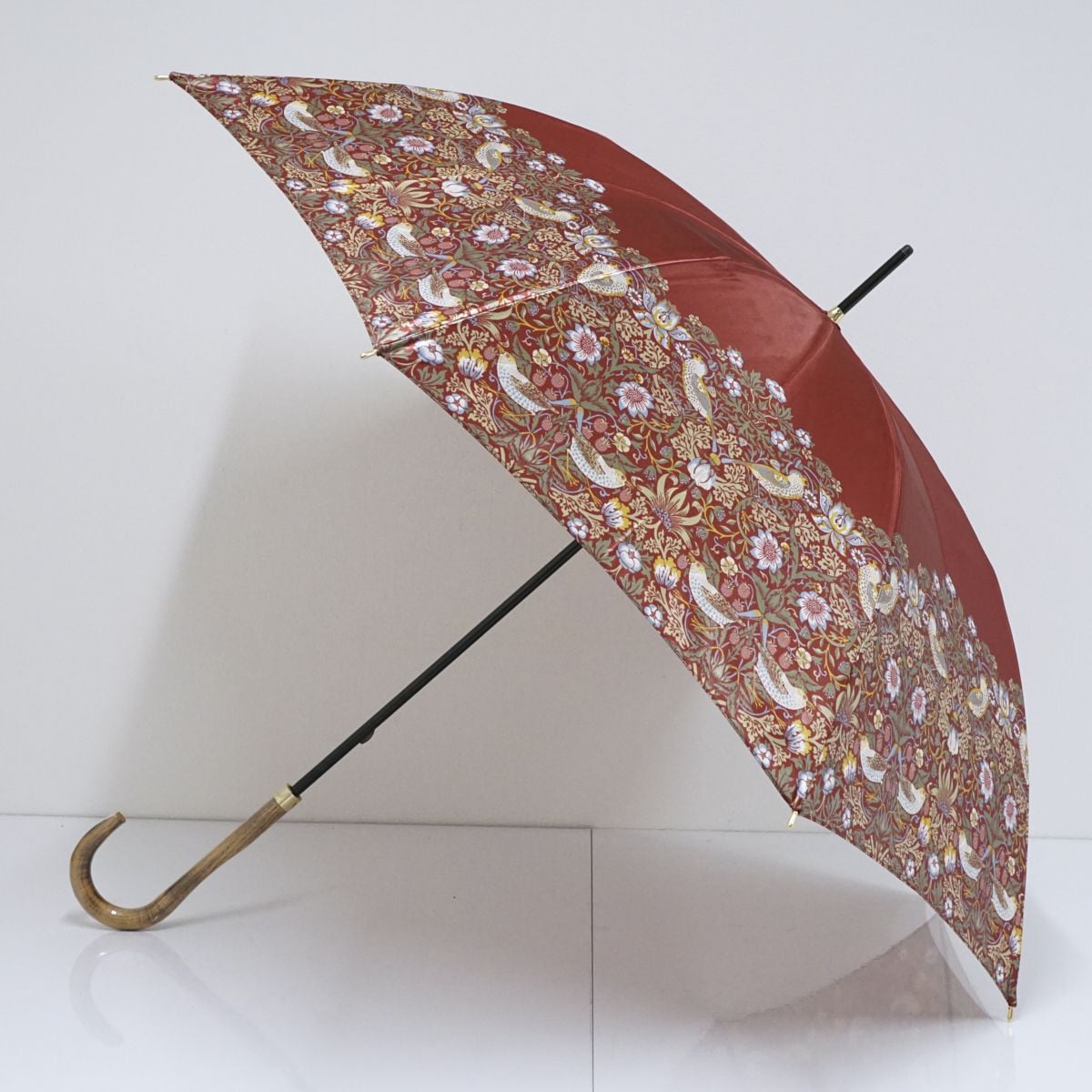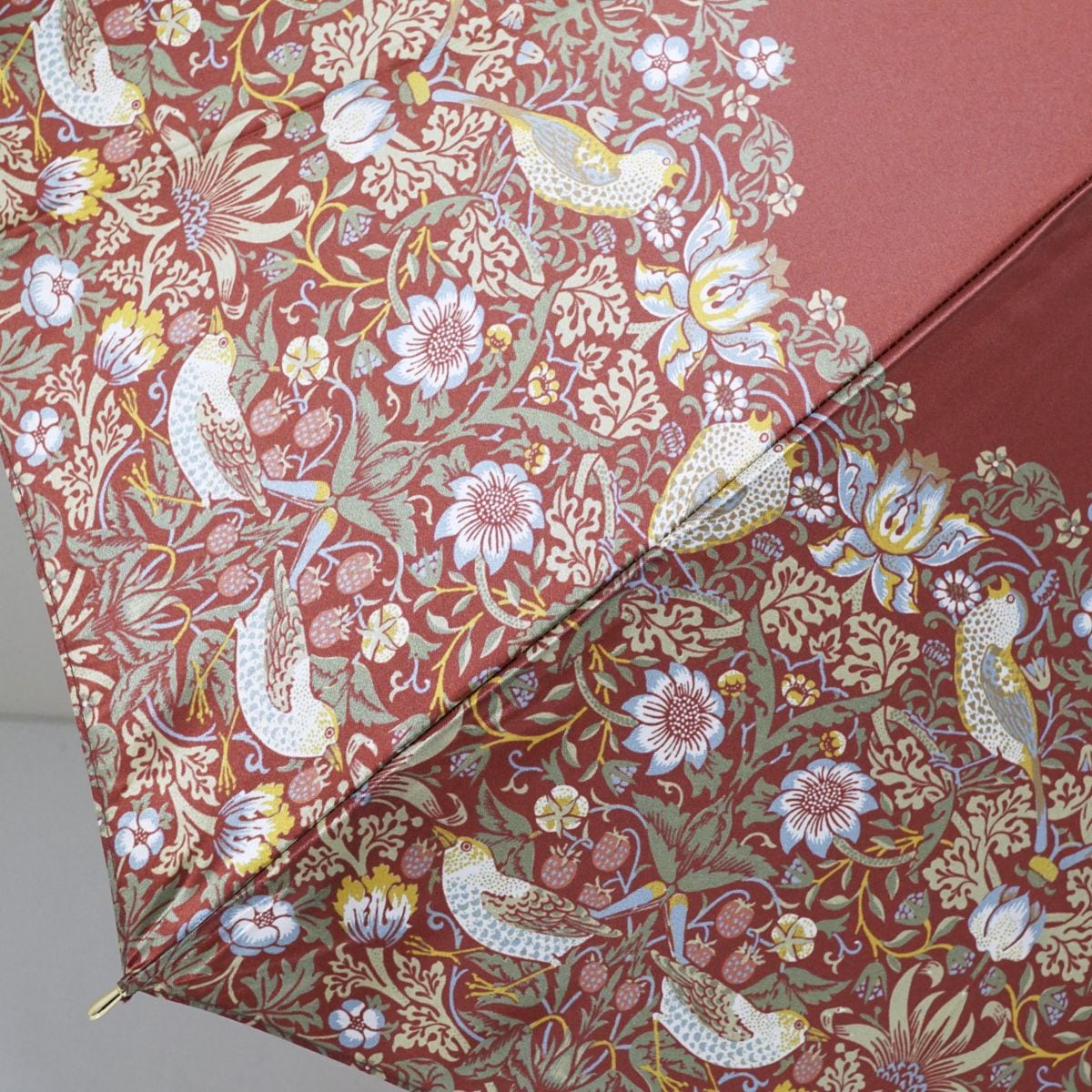 ウィリアムモリスの代表作「いちご泥棒」を傘生地に落とし込んだアーティスティックなアンブレラです。