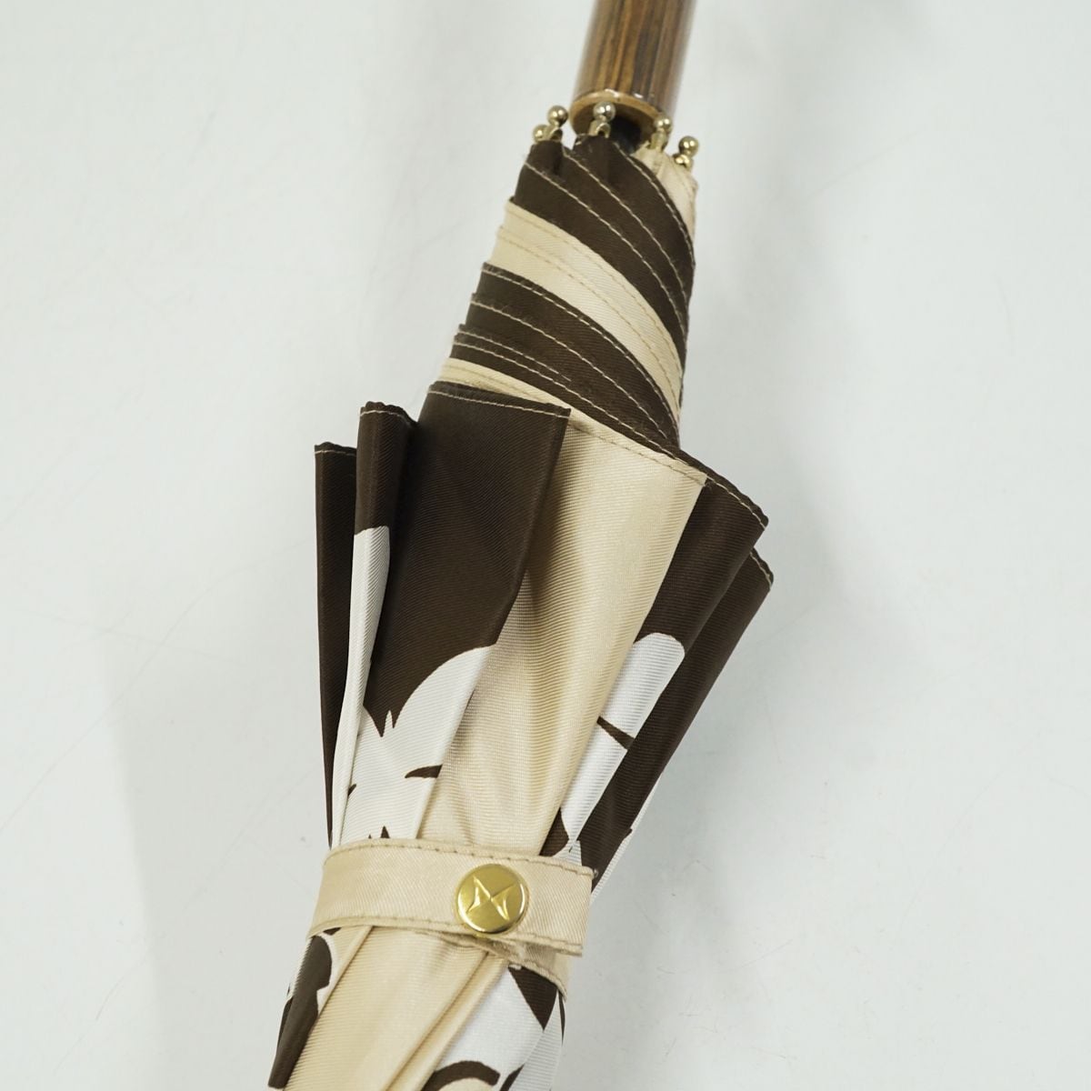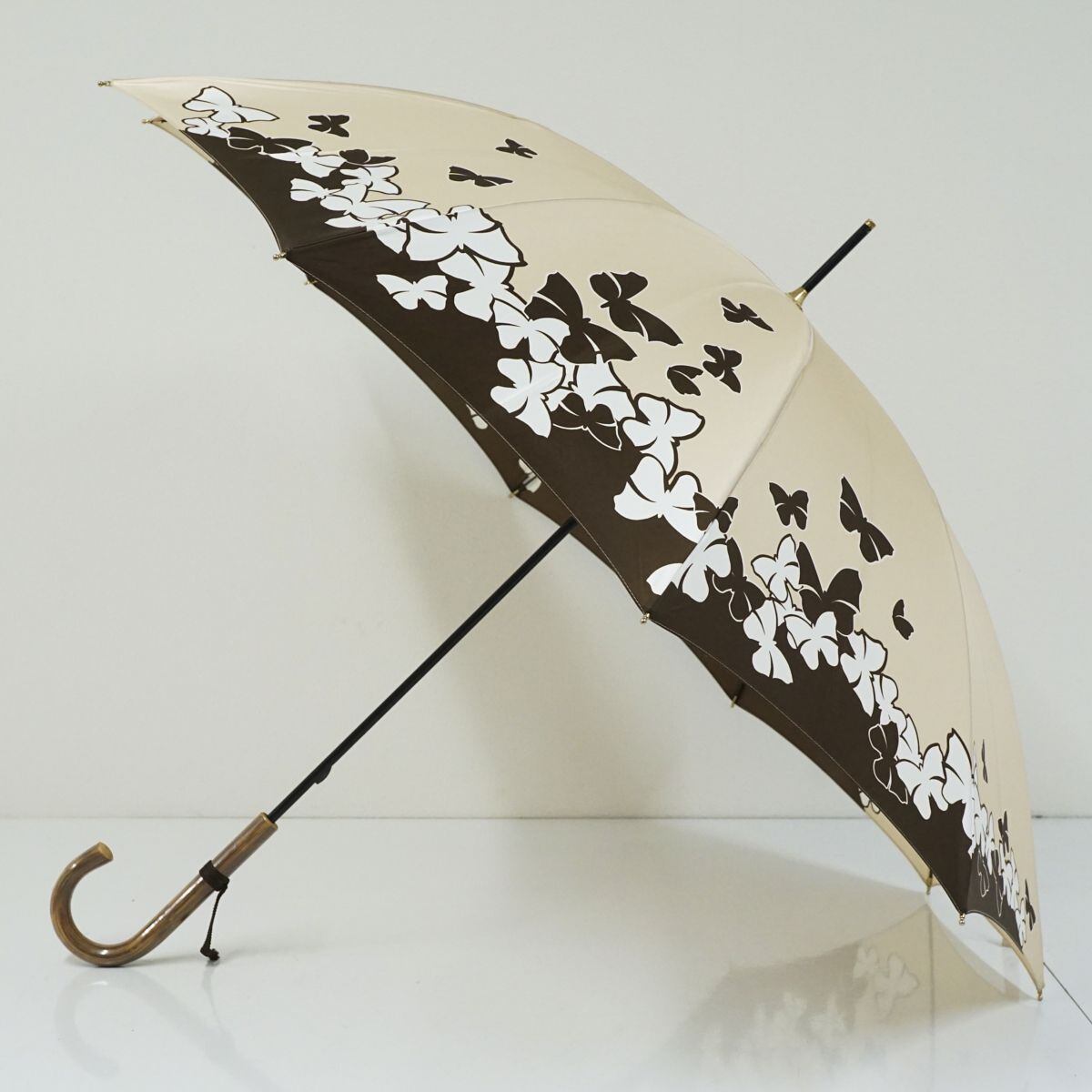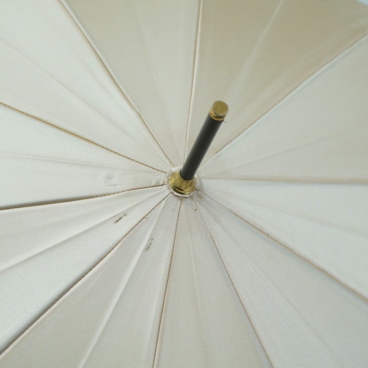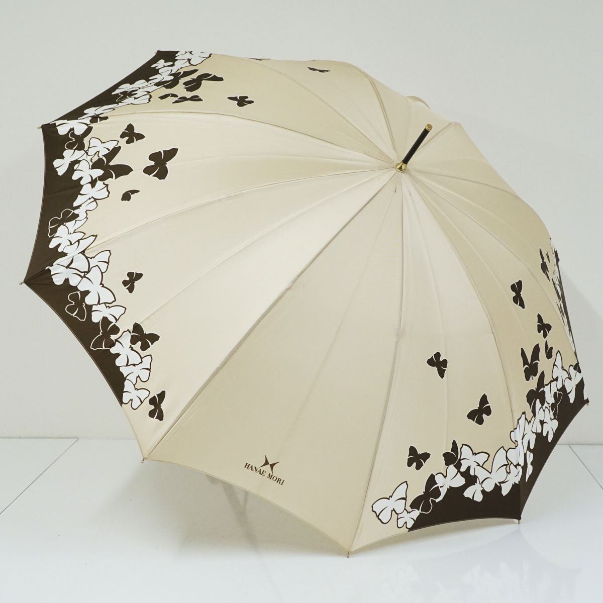 傘 HANAE MORI ハナエモリ USED美品 レディース シャンパンベージュ 花柄 フラワープリント カーボン骨 軽量 ブランド 高級 55cm S1409