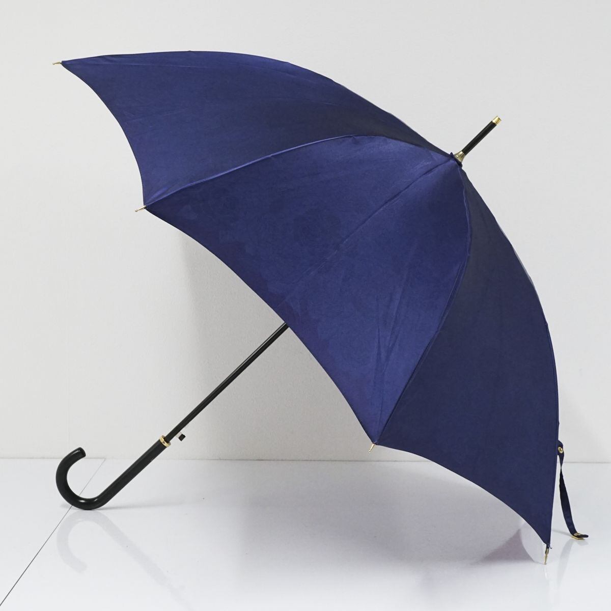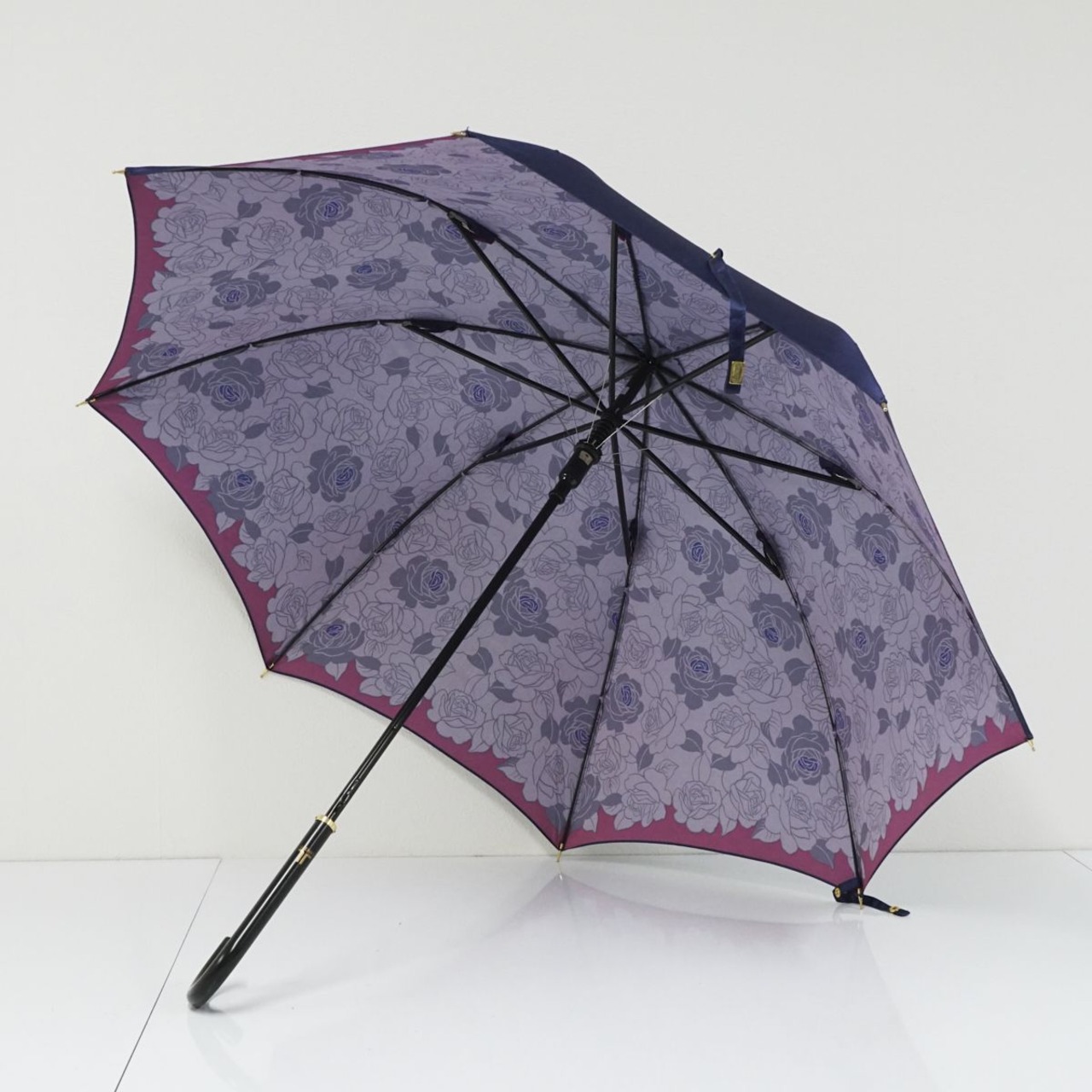 外側は光沢のあるネイビーの生地に、内側はローズが全面に広がるデザインがとてもエレガントです。