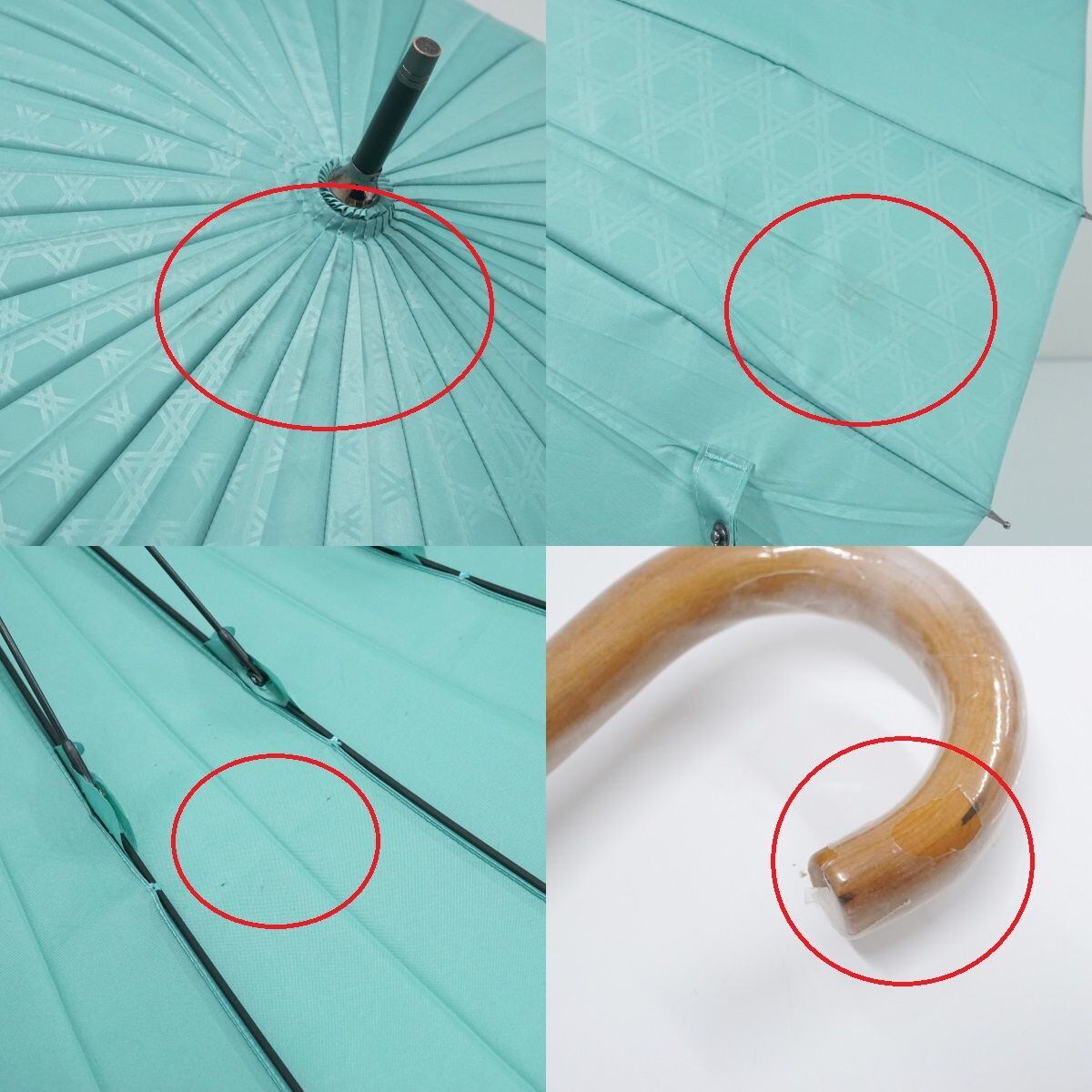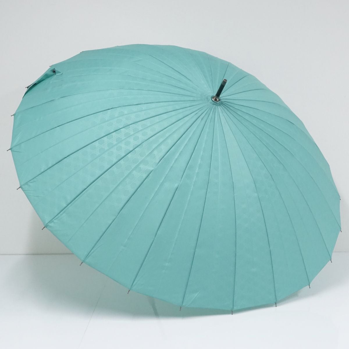mabu マブ 傘 USED美品 江戸 「浅葱X六角籠目」 浅葱色 和風 レトロ 男女兼用 24本骨 多間 グラス骨 和装 和柄 着物 60cm A1598