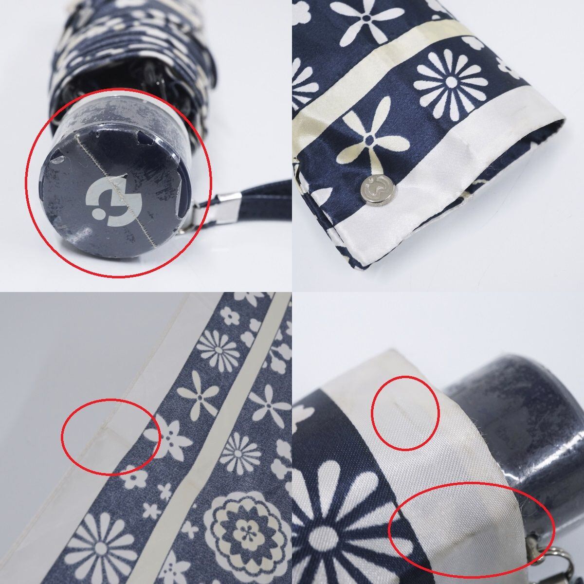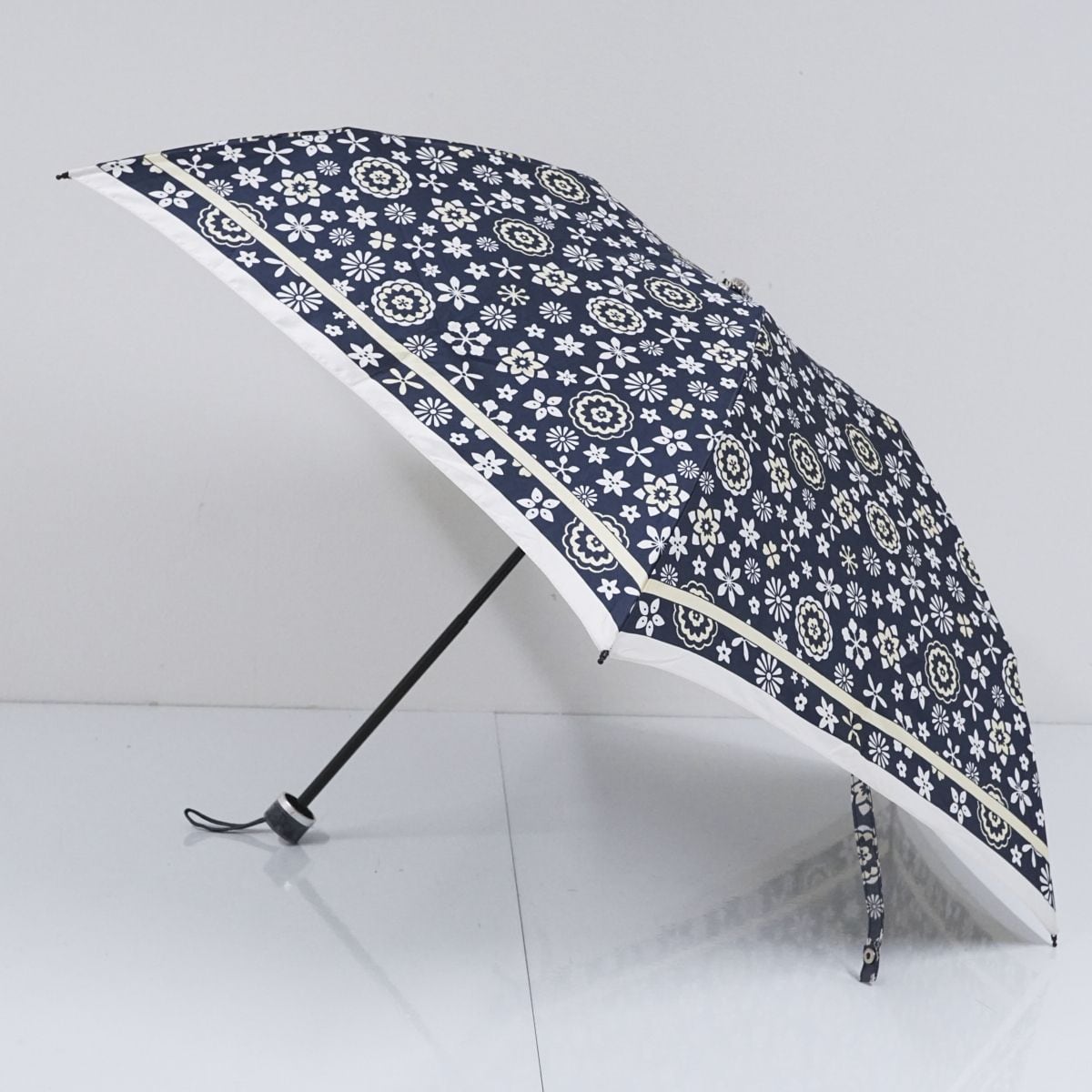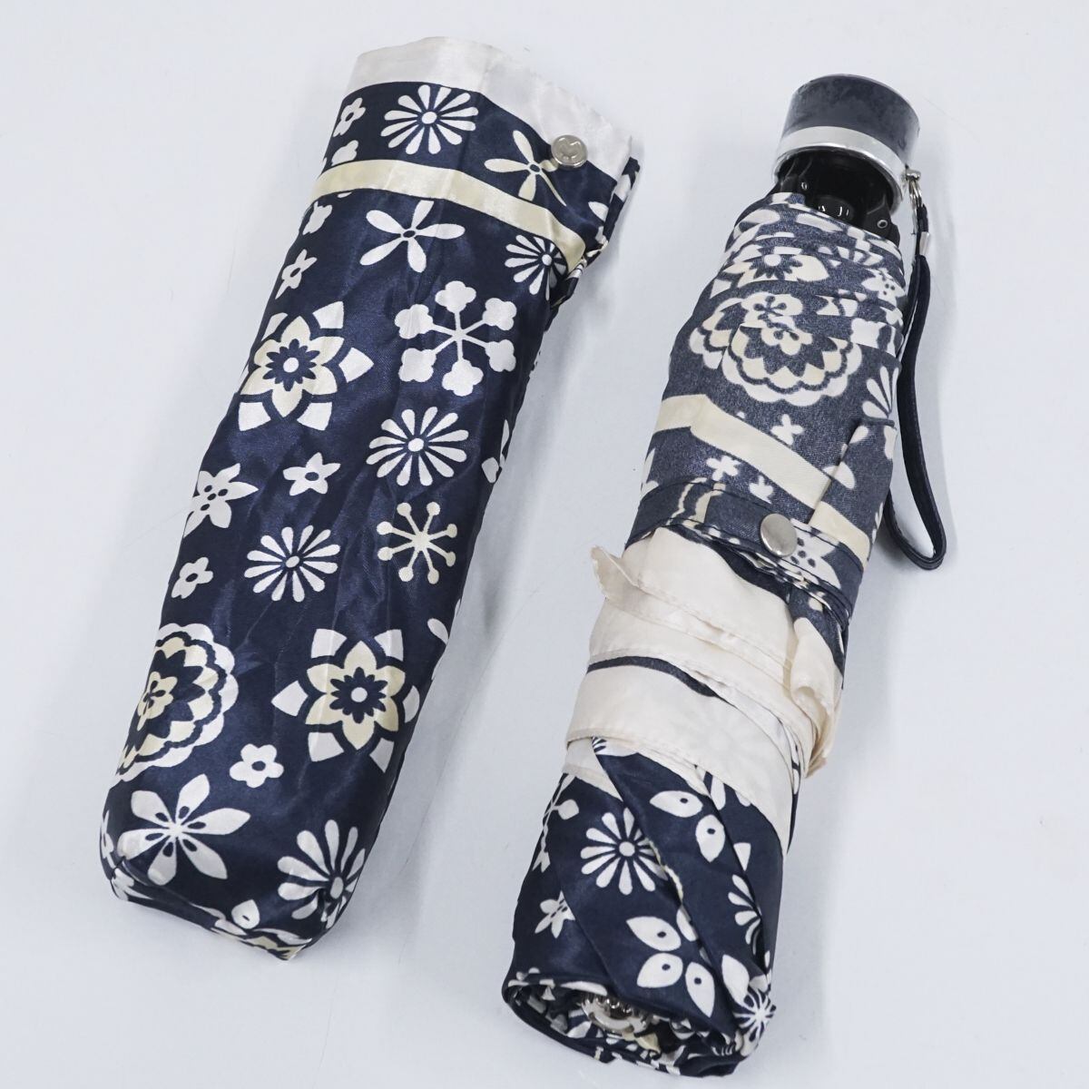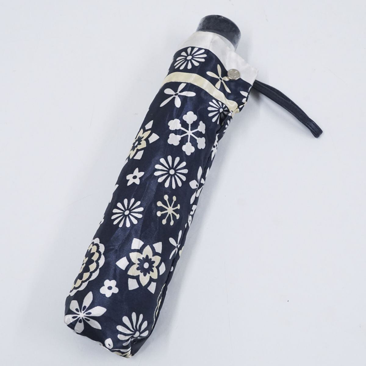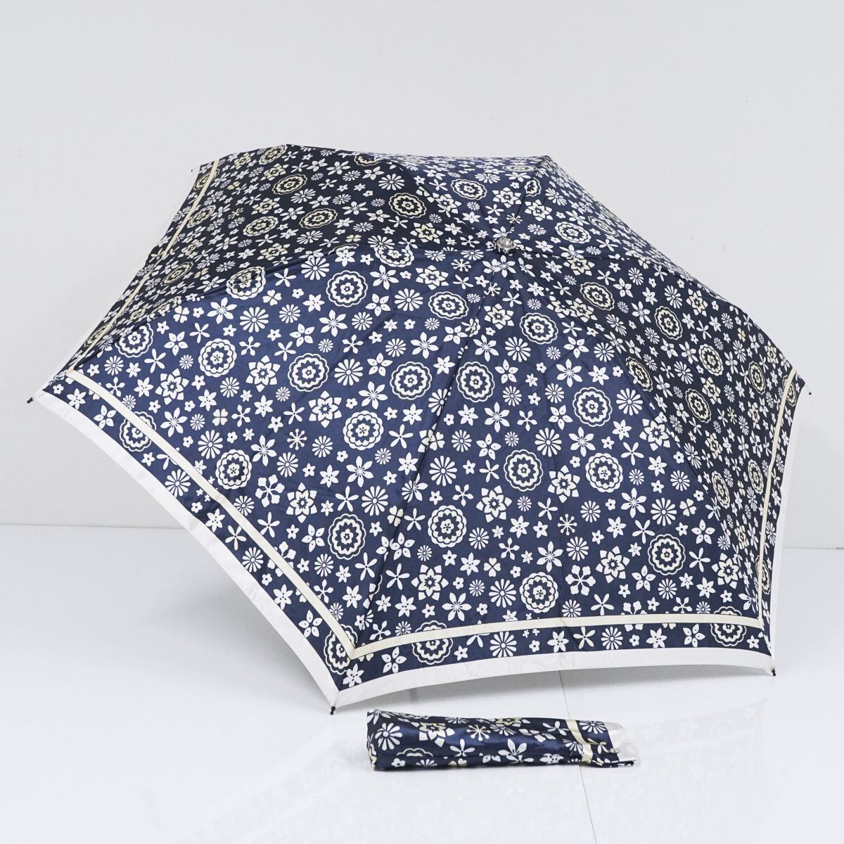 折りたたみ傘 mila schon ミラショーン USED美品 フラワープリント ネイビー コンパクト 折傘 55cm FA8685