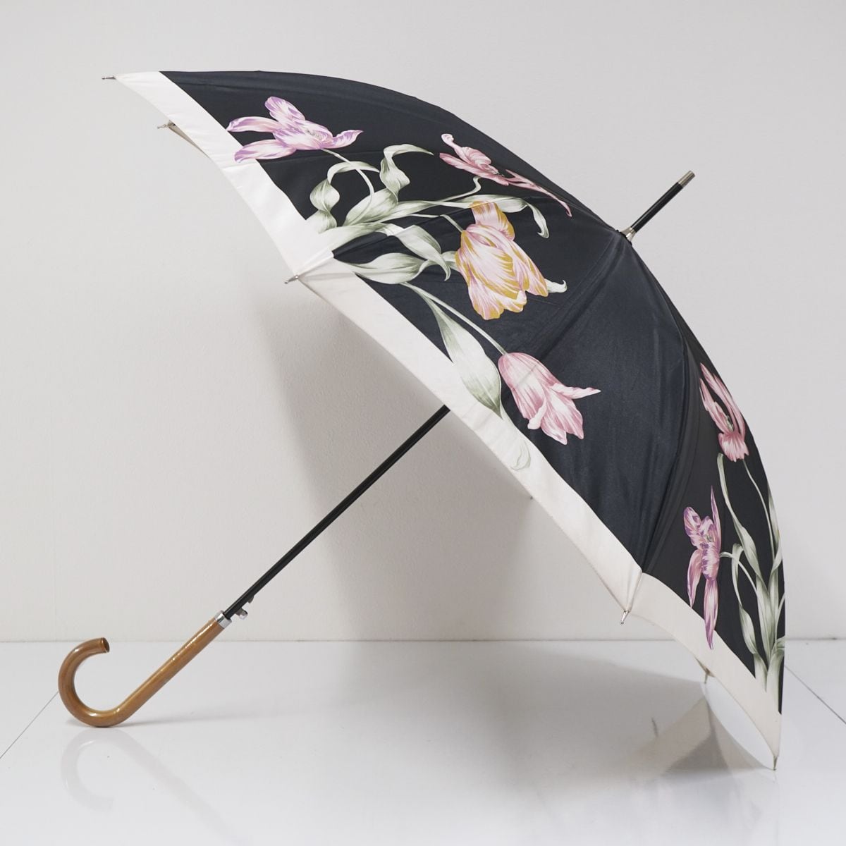 傘 ROYAL WORCESTER ロイヤルウースター USED美品 花柄 エレガント ブラック ジャンプ A1456