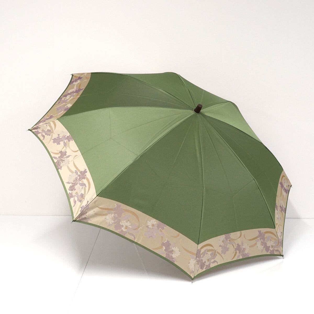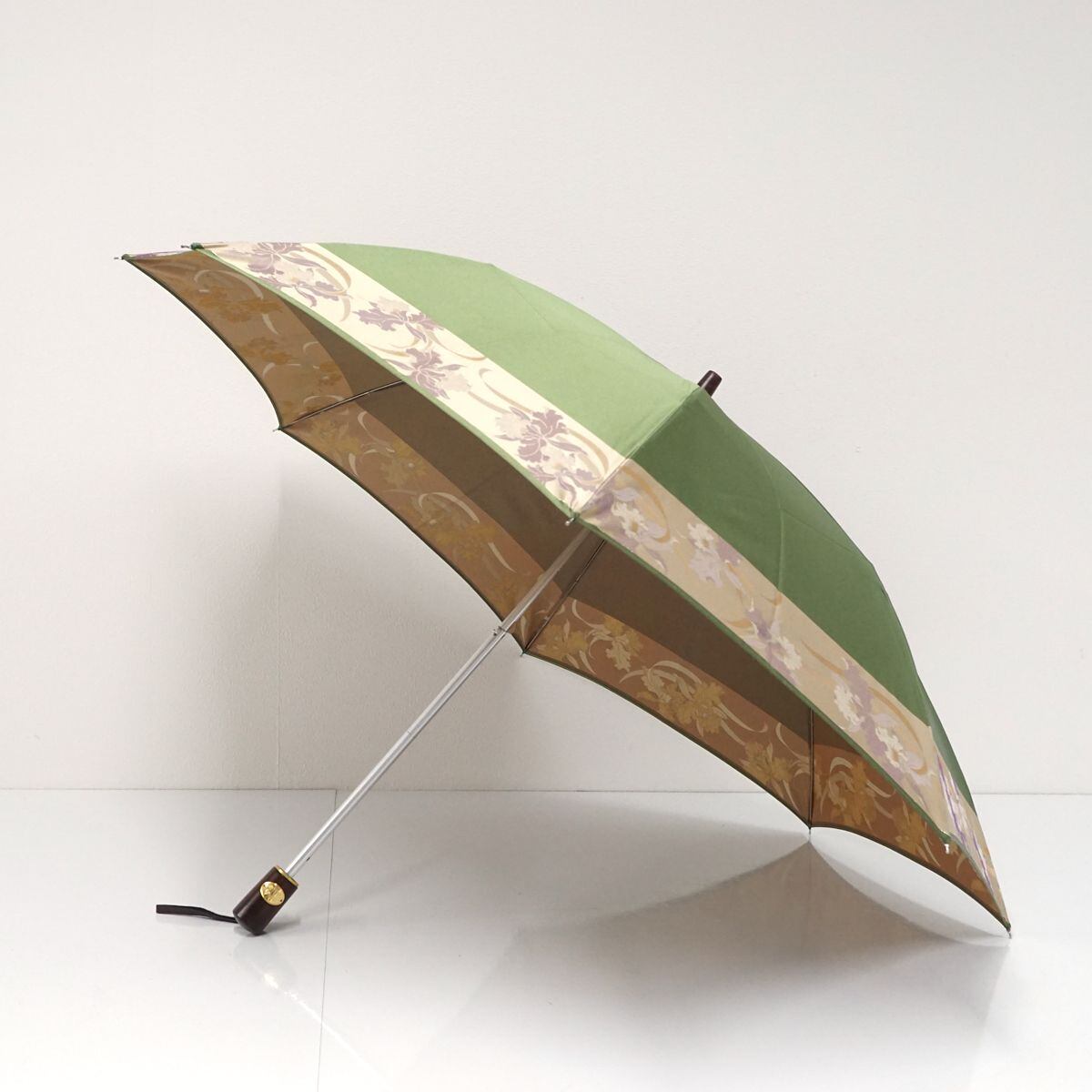 折りたたみ傘 前原光榮商店 USED美品 カトレア 花柄 グリーン ジャガード織 天然木手元 高級傘 日本製 職人 55cm FS8689
