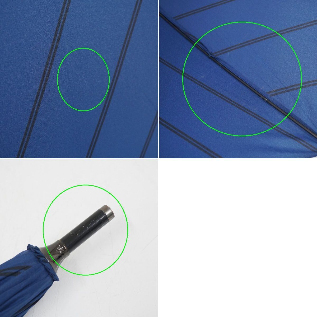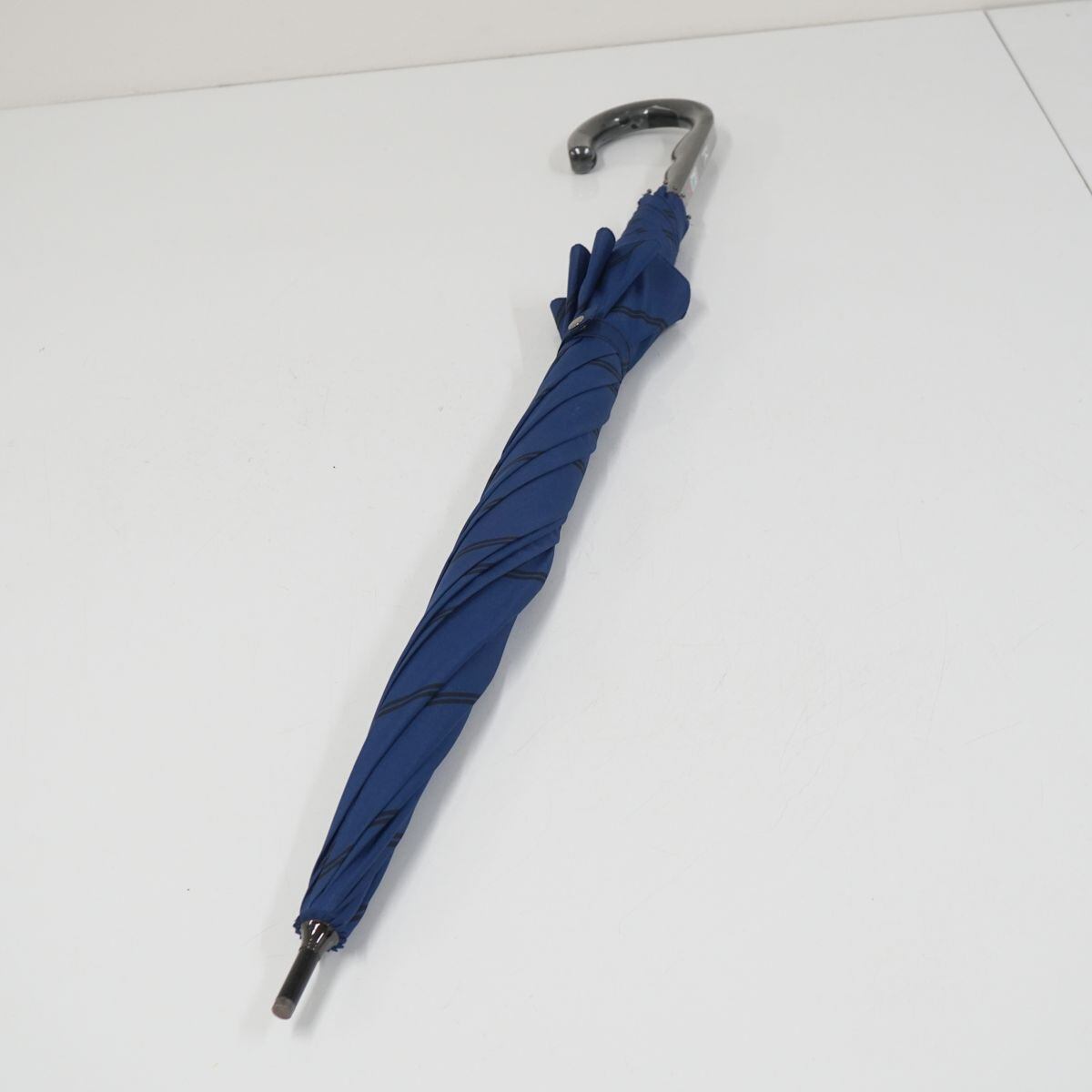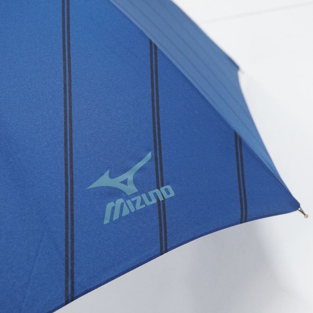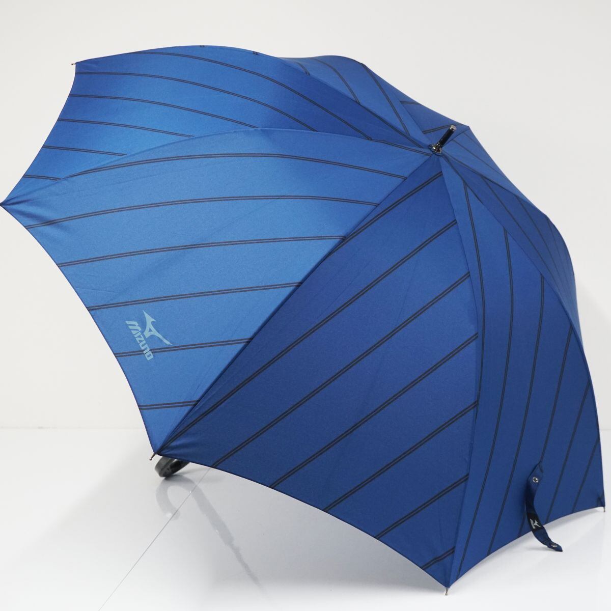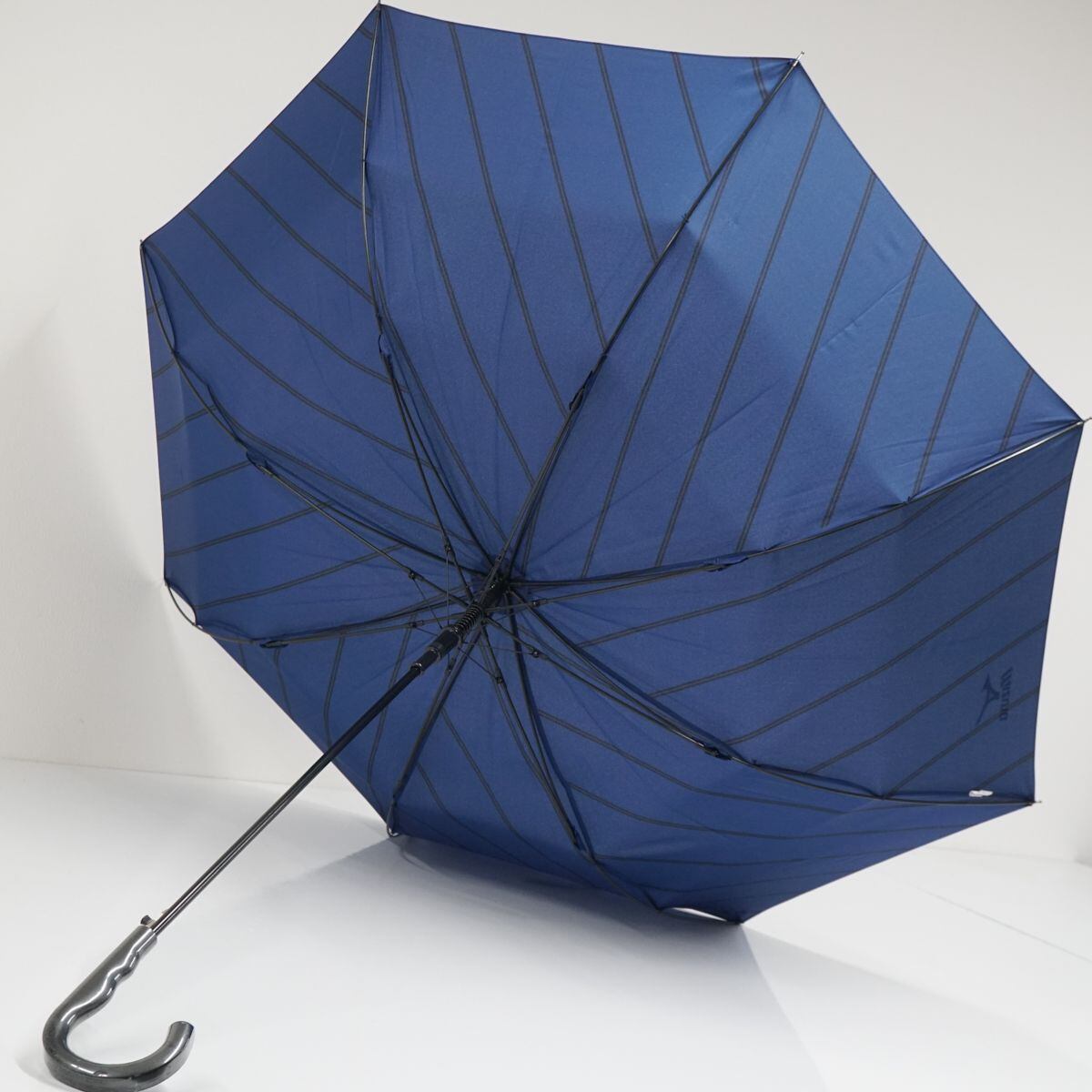 傘 MIZUNO ミズノ USED美品 耐風 メンズ 斜めストライプ ブルー グラス骨 超大判 70cm A1396
