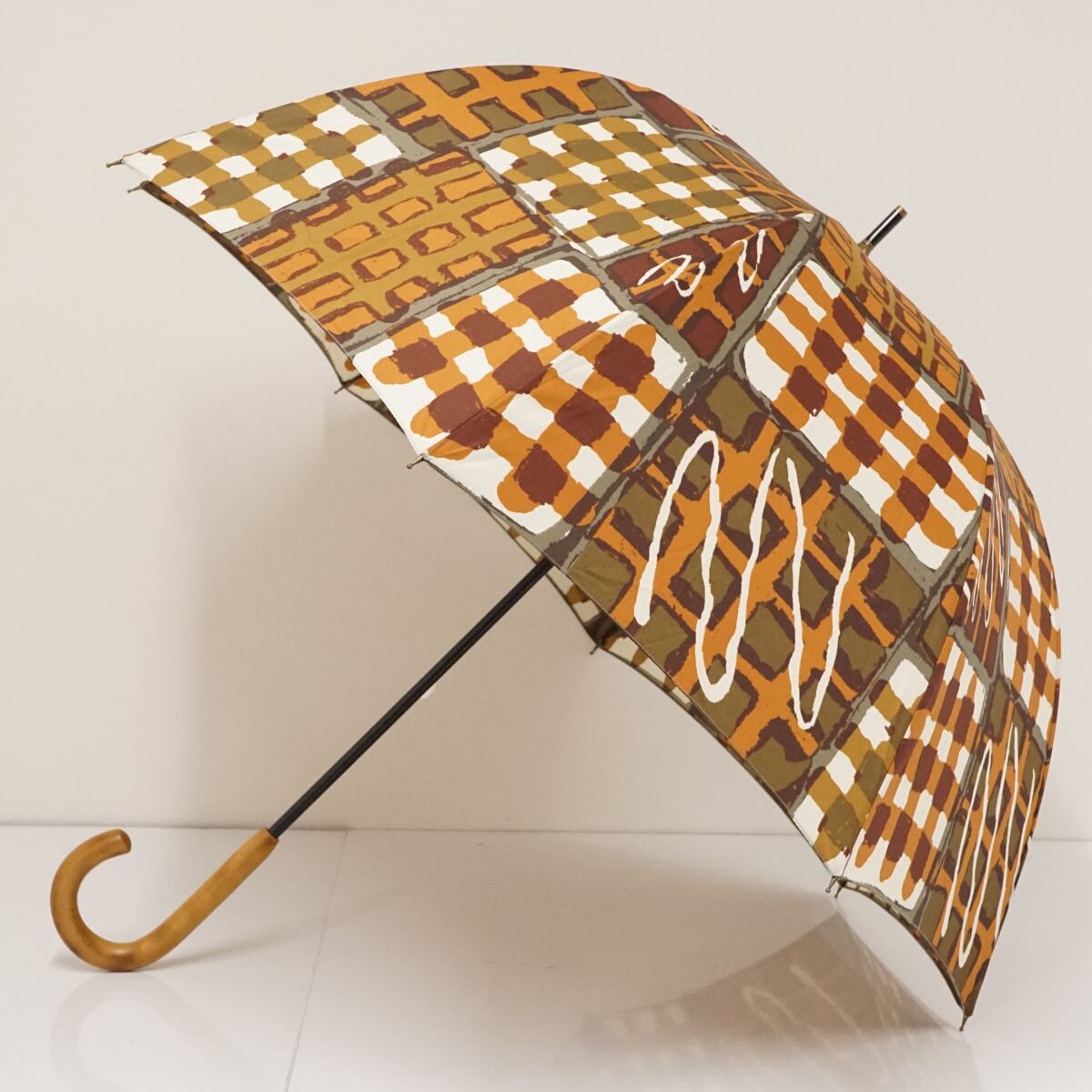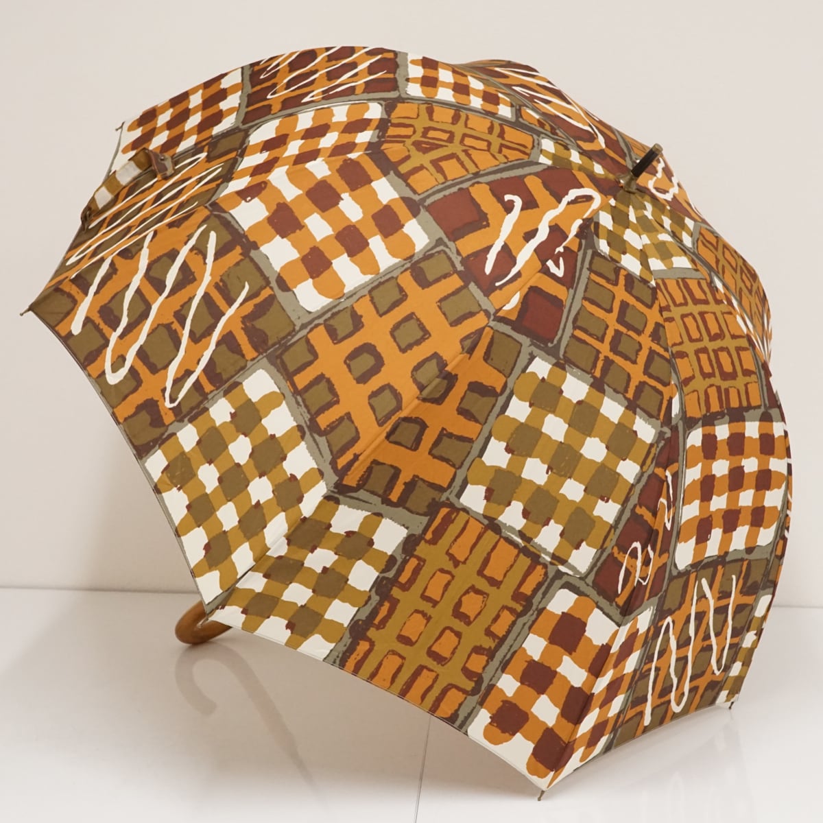 傘 gochisou ゴチソウ USED美品 ブラウン系 ワッフル テキスタイル 個性的 かわいい 60cm A1907