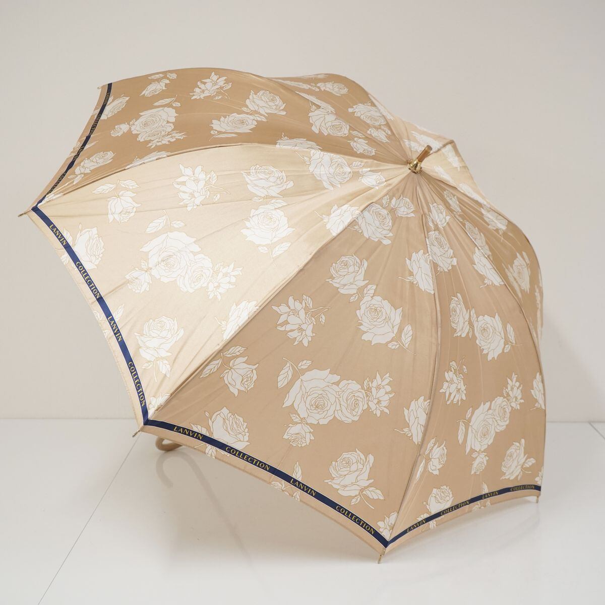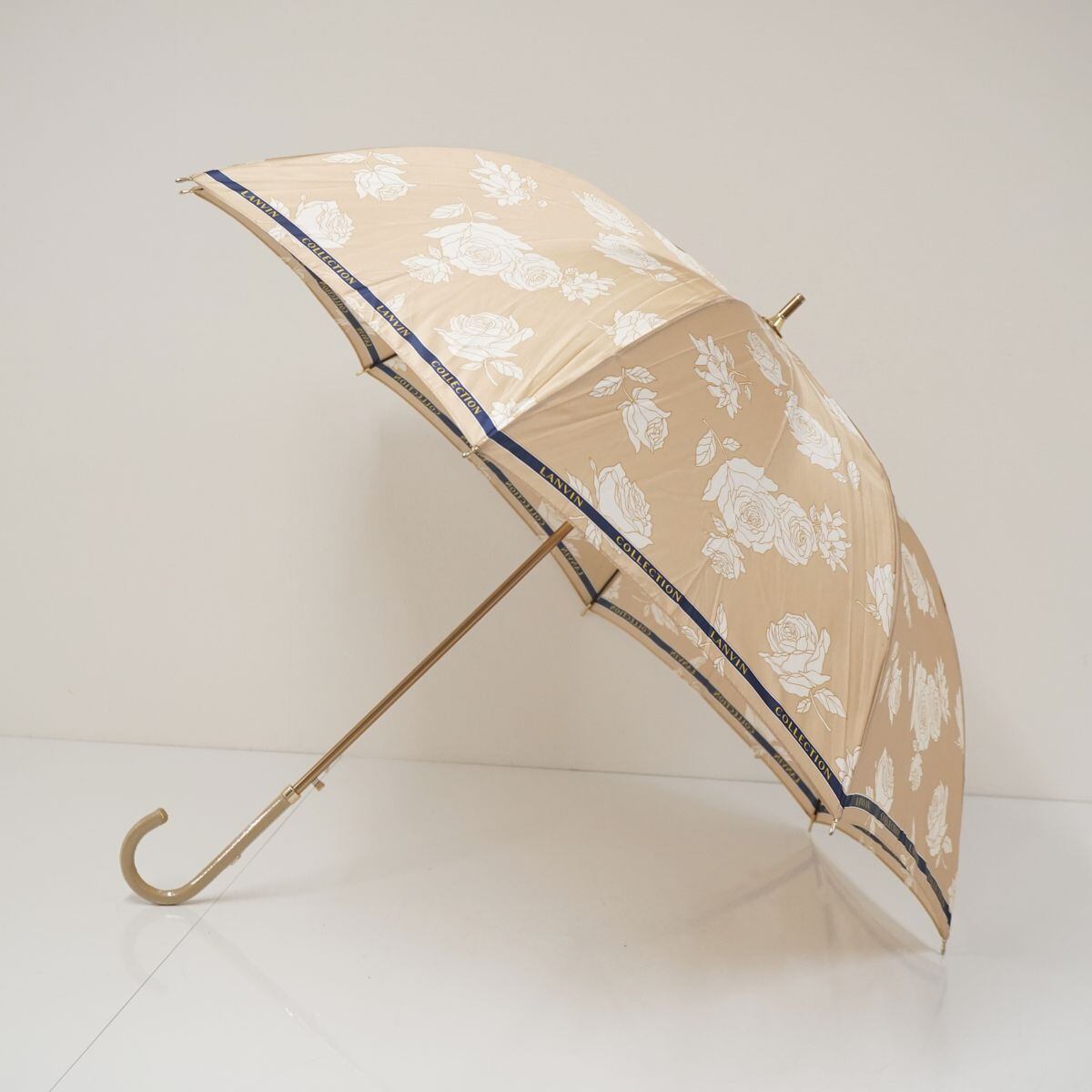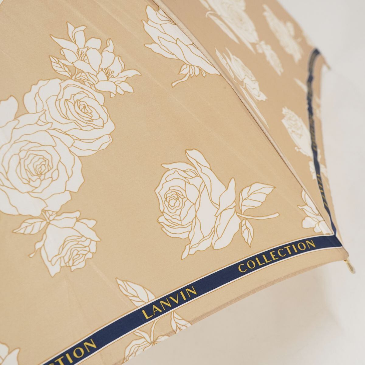 光沢のあるベージュの生地に、バラをデザインした「ランバンコレクション」の傘です。