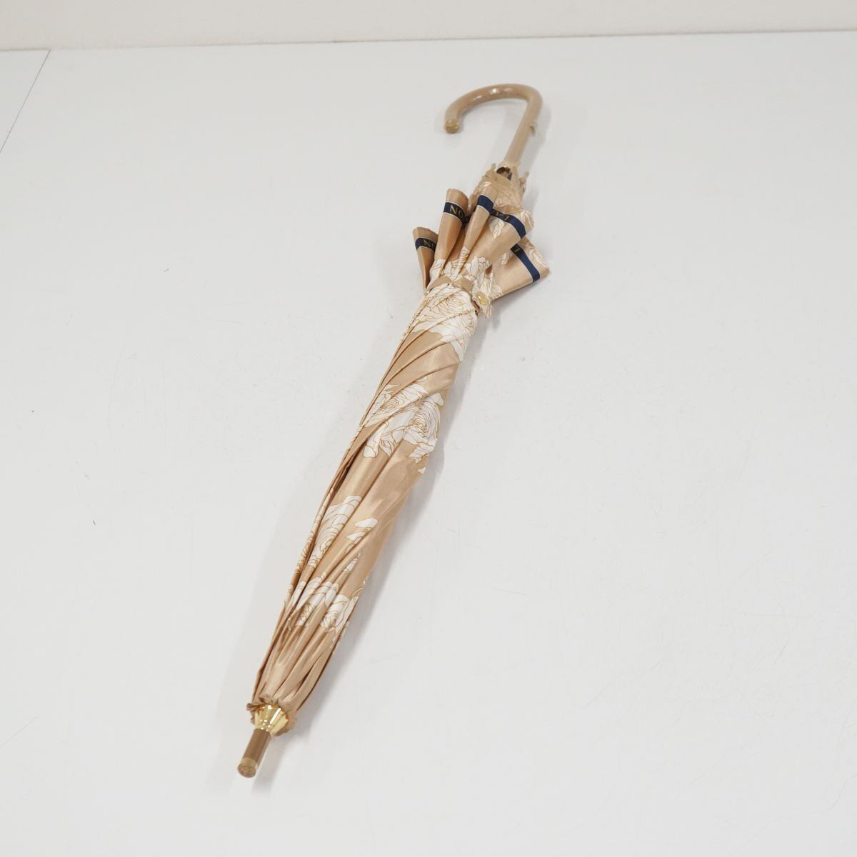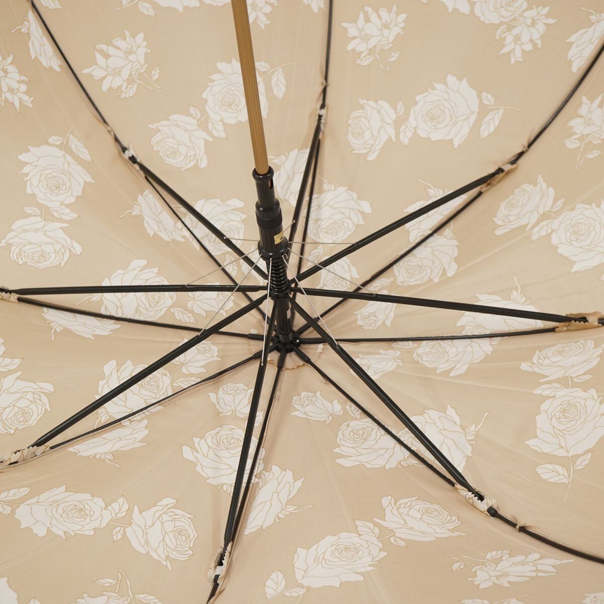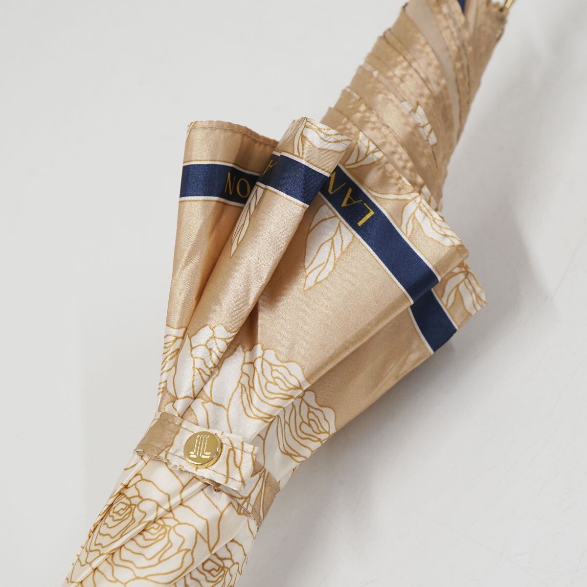 光沢のあるベージュの生地に、バラをデザインした「ランバンコレクション」の傘です。