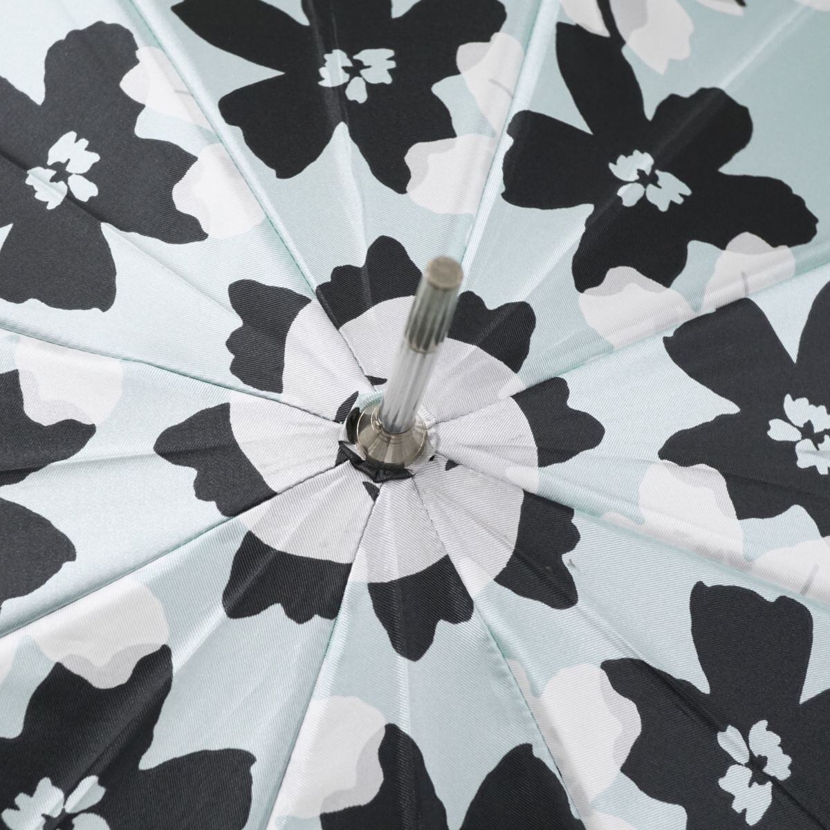 明るいミントグリーンの生地にフラワープリントが可愛らしい印象のデザインです。