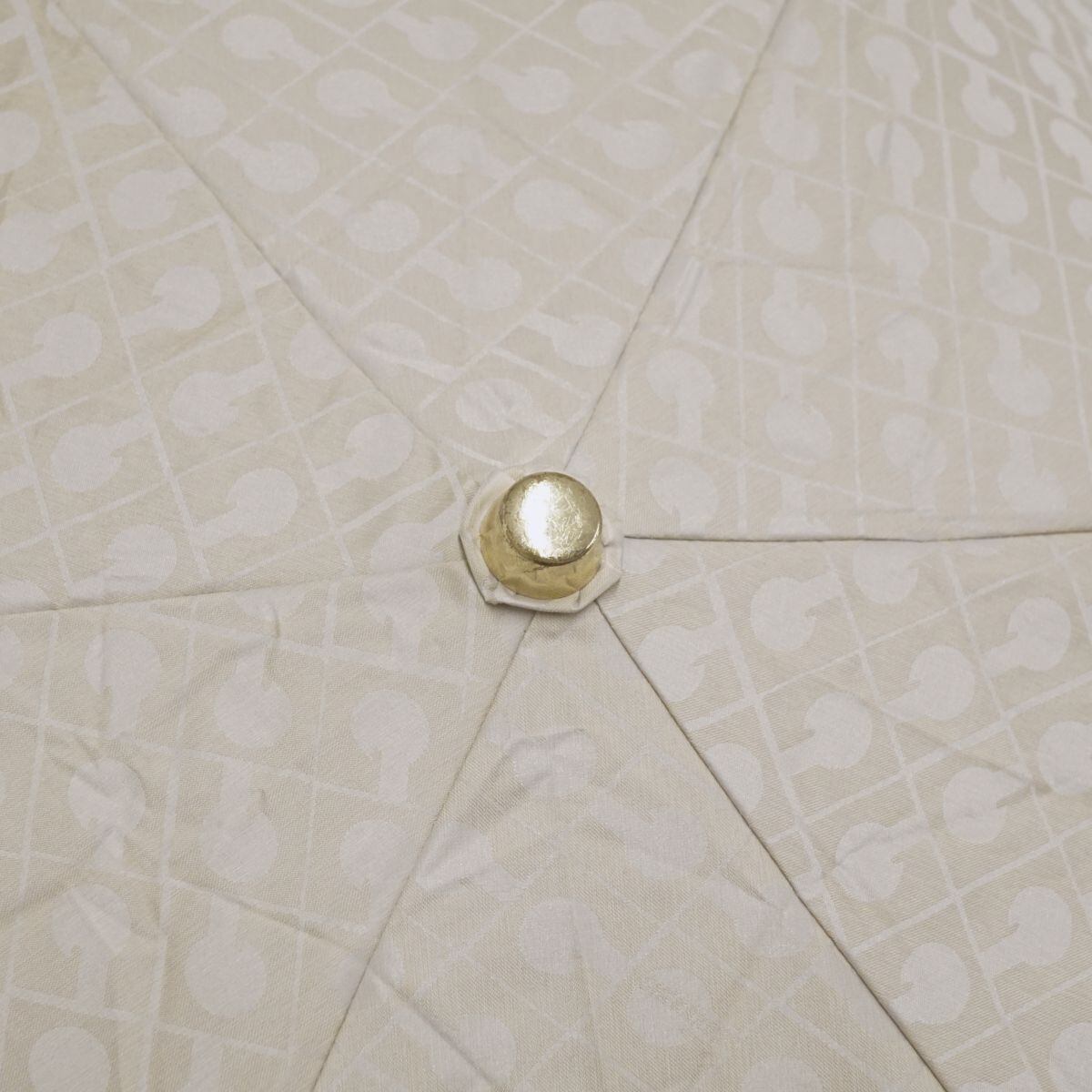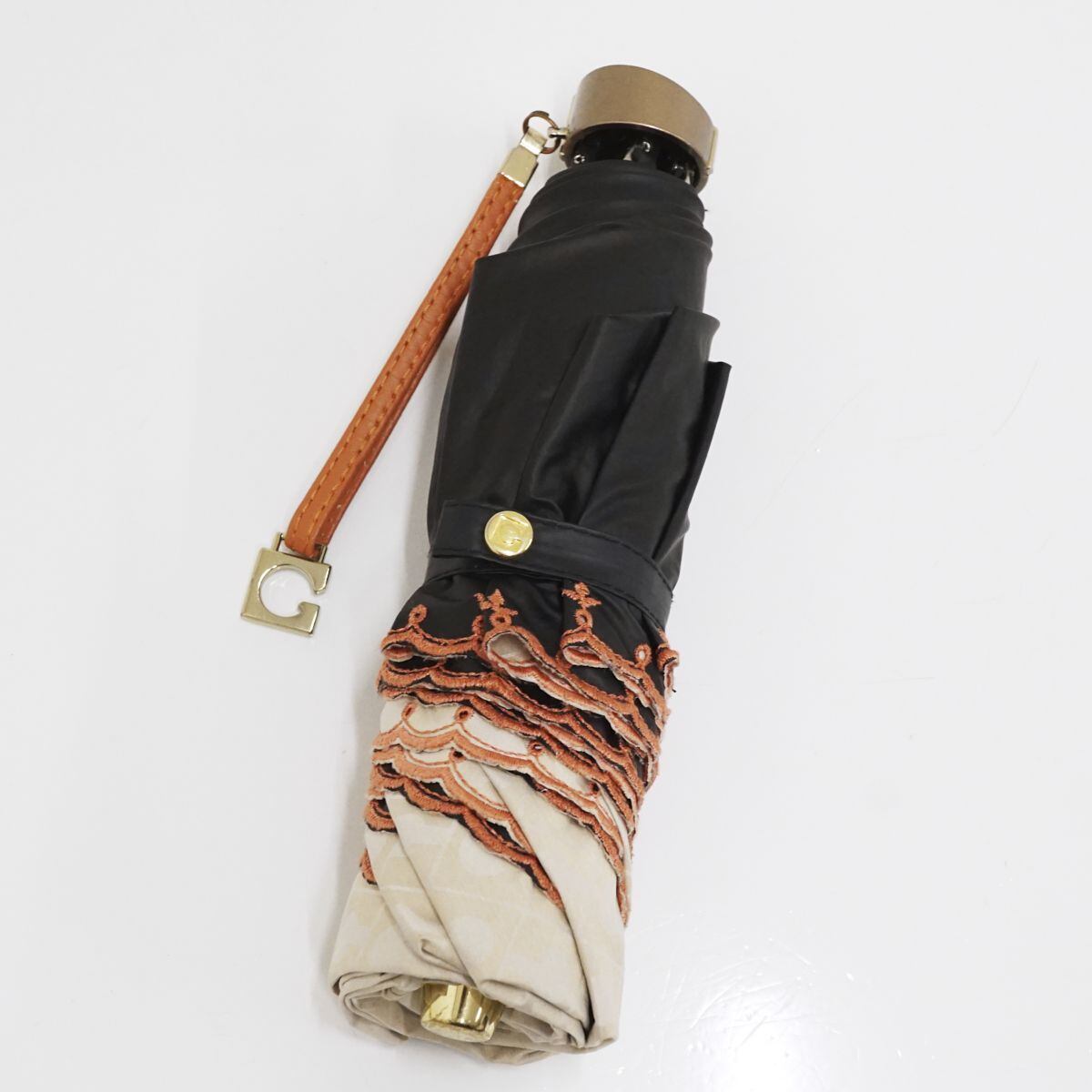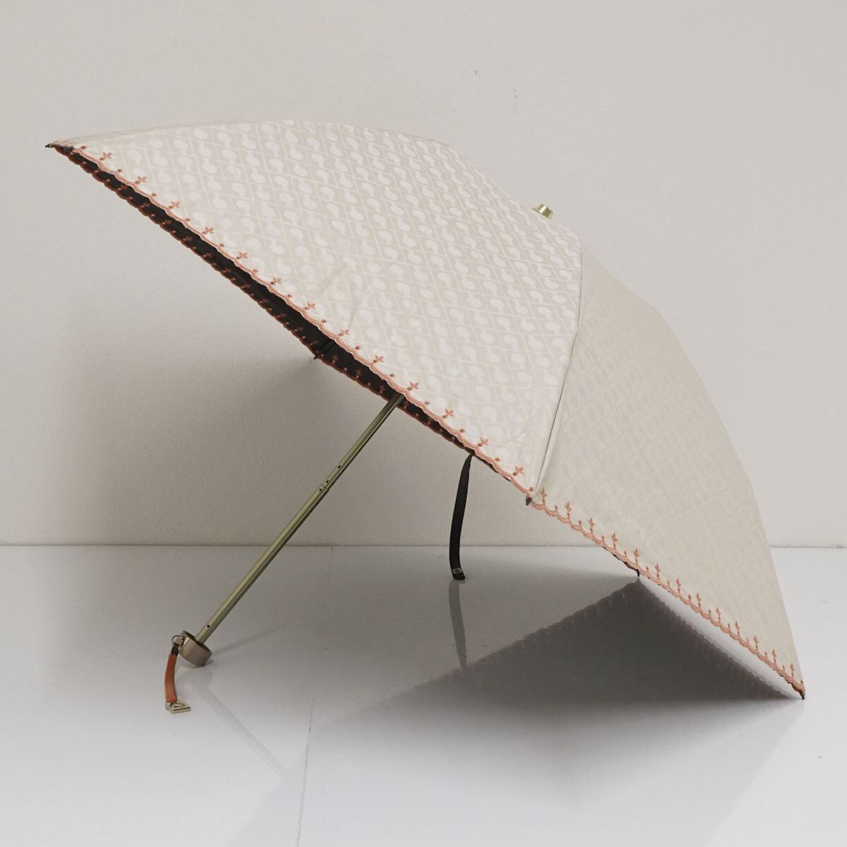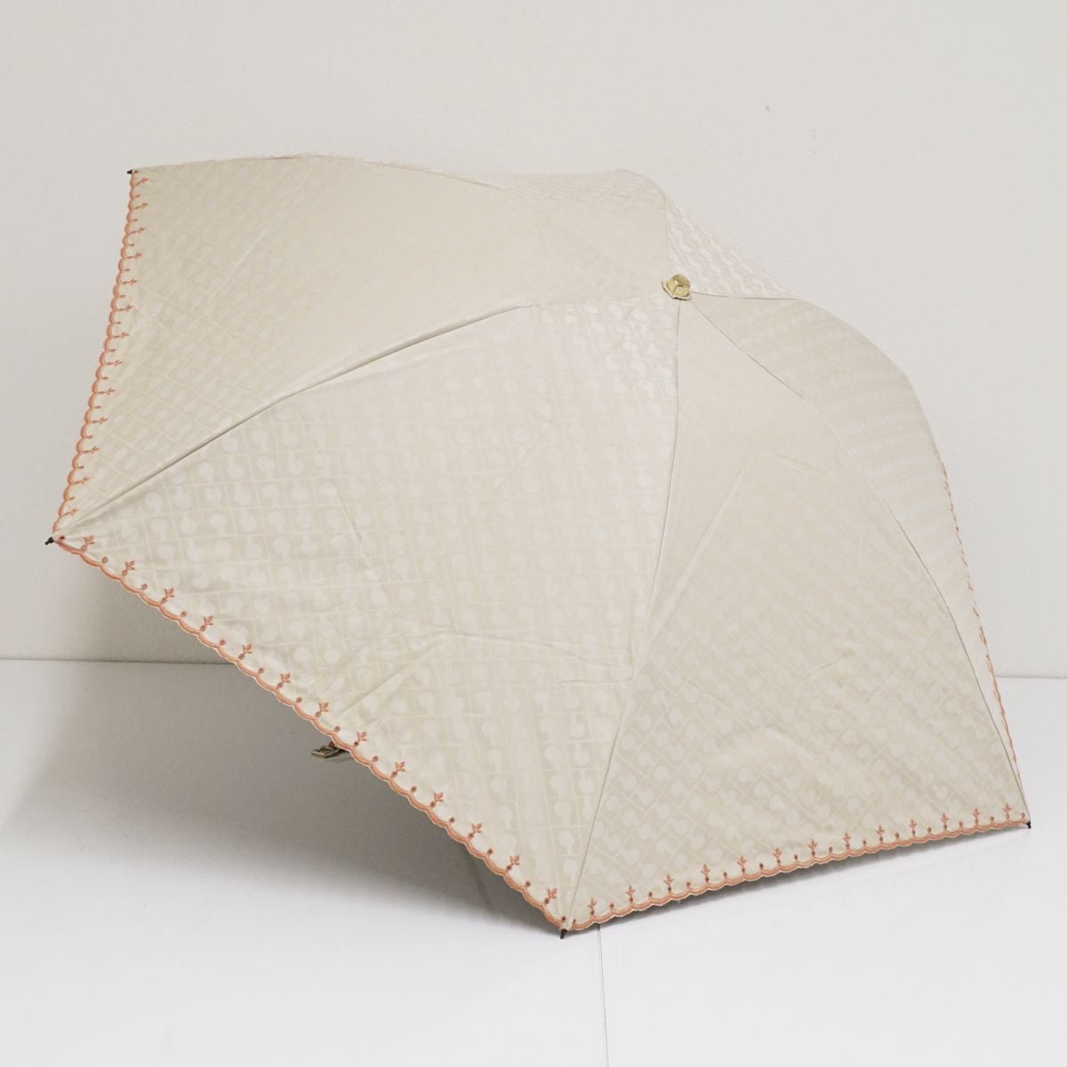 GERARDINI ゲラルディーニ 折りたたみ日傘 USED美品 晴雨兼用 ベージュ ロゴ すそ刺繍 遮光 UV FA8695