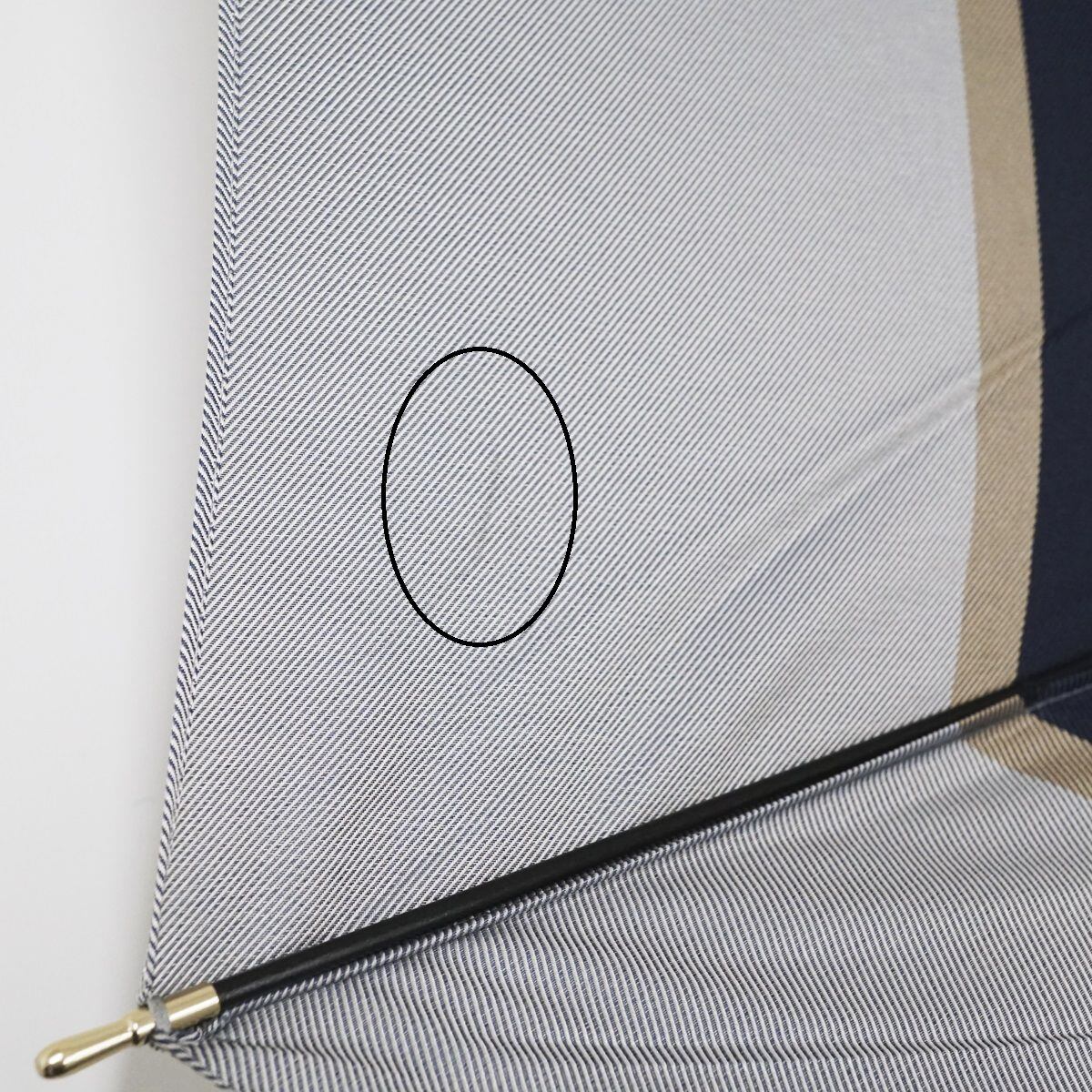 傘 Aquascutum アクアスキュータム USED美品 ジャガード ネイビー ボーダー 日本製 グラス骨 60cm S1486