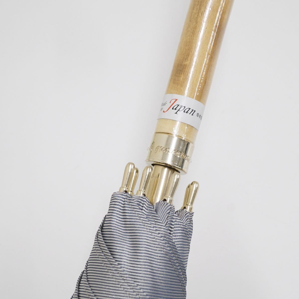 また、巻きベルトのボタン、露先、手元のロゴリングをゴールドパーツで揃え、ちょっぴりゴージャス感をプラスしています。