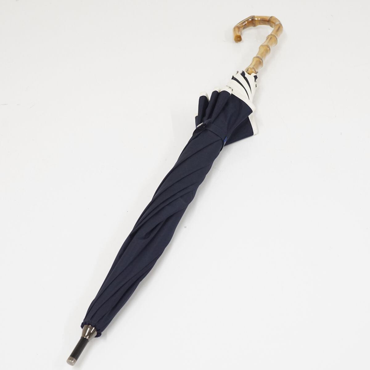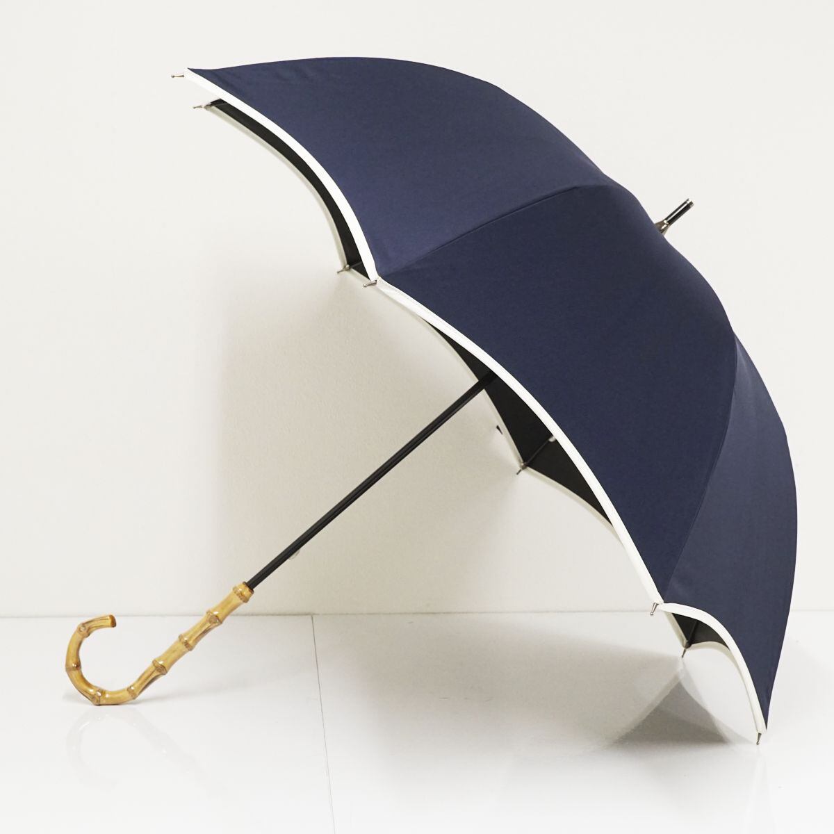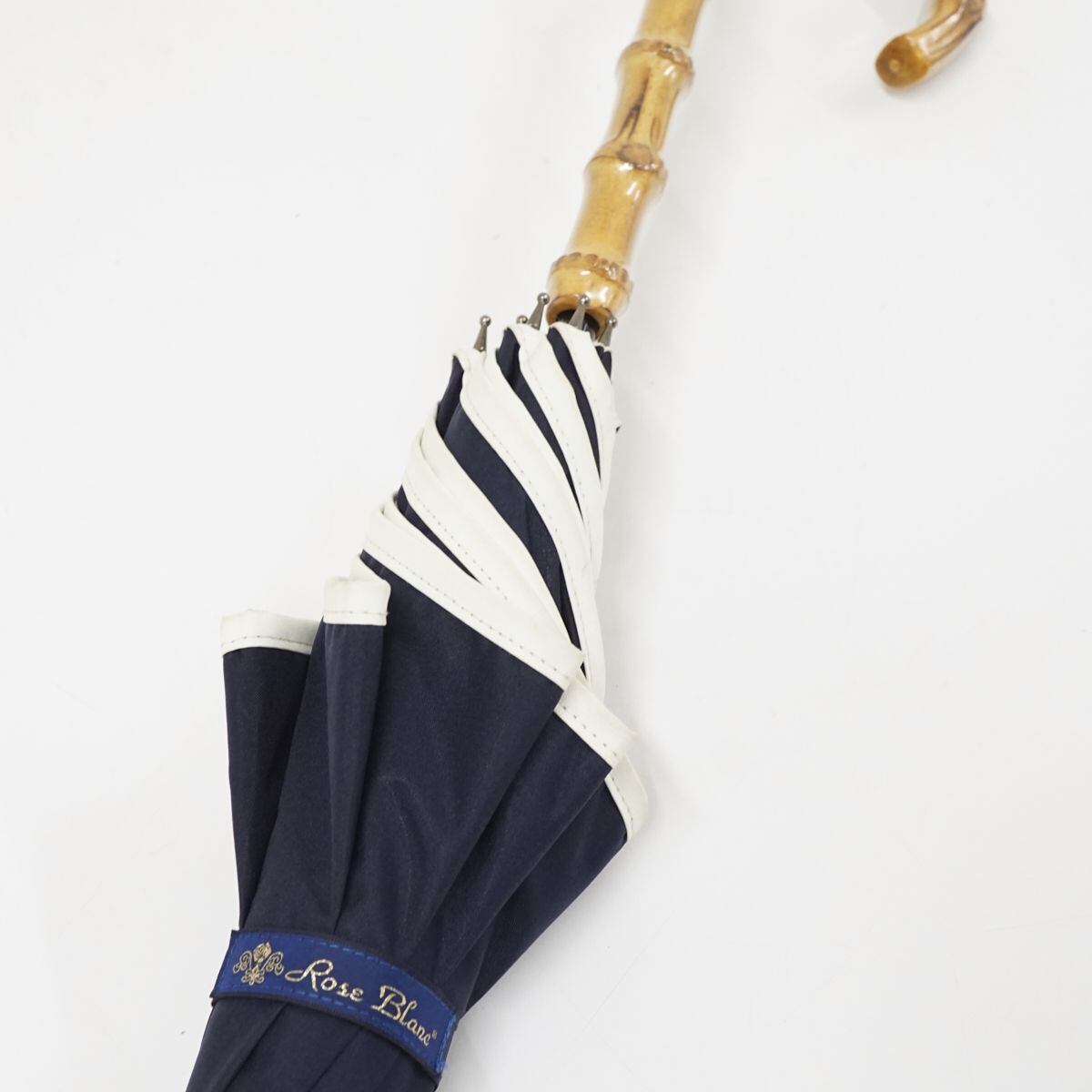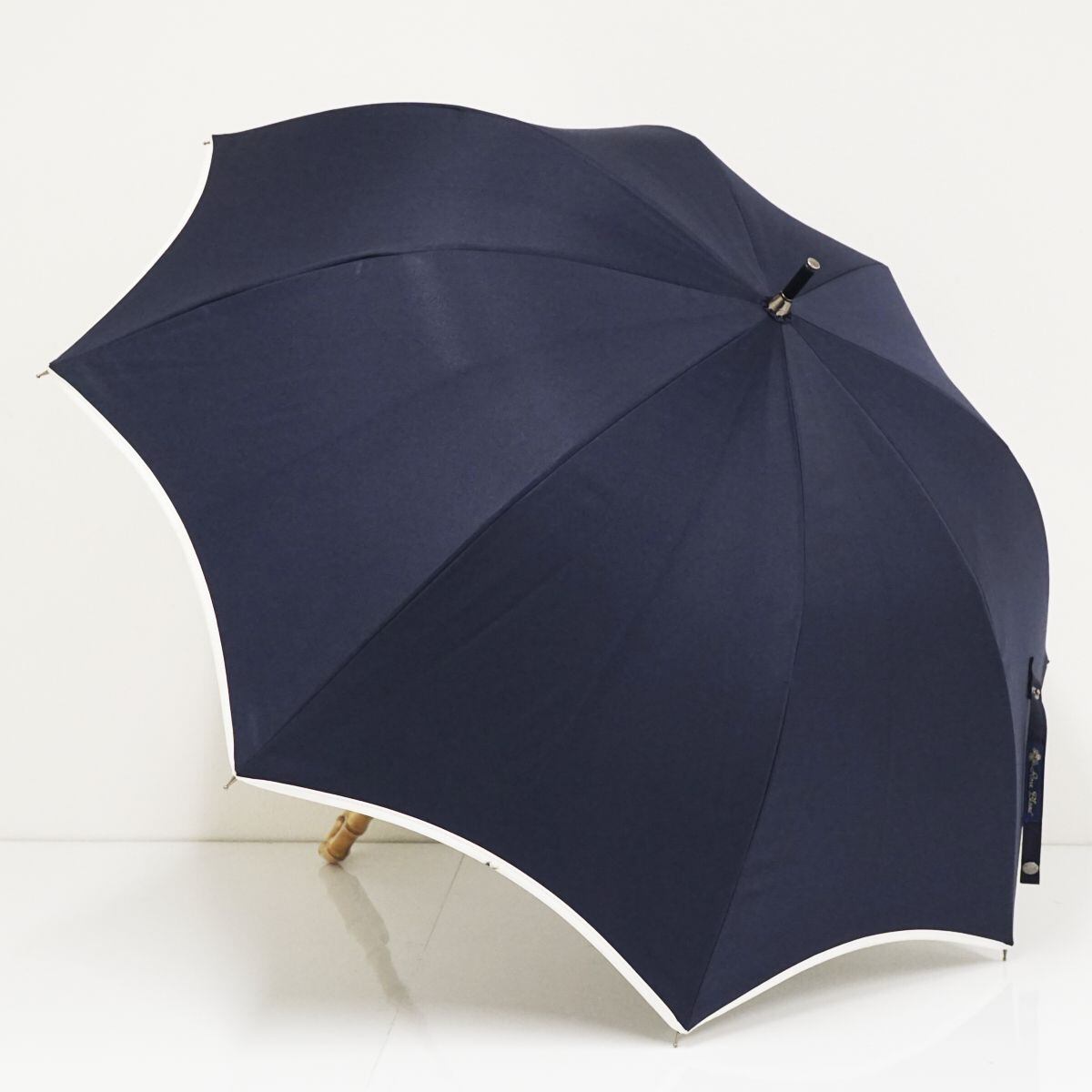 こちらは親骨55cmのミドルサイズで、ネイビー生地の外周にアイボリーのパイピングを施したデザインです。