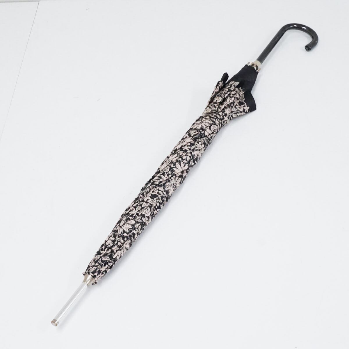 NINA RICCI ニナリッチ 傘 USED美品 フラワープリント 花 グラスファイバーフレーム ブラック 60cm A3225